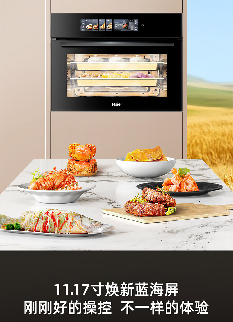 海尔(Haier)【麦浪套系】蒸烤箱嵌入式瞬蒸C50彩屏蒸烤一体机 4D立体热风 11.17寸大彩屏 自清洁 智慧互联TCU1