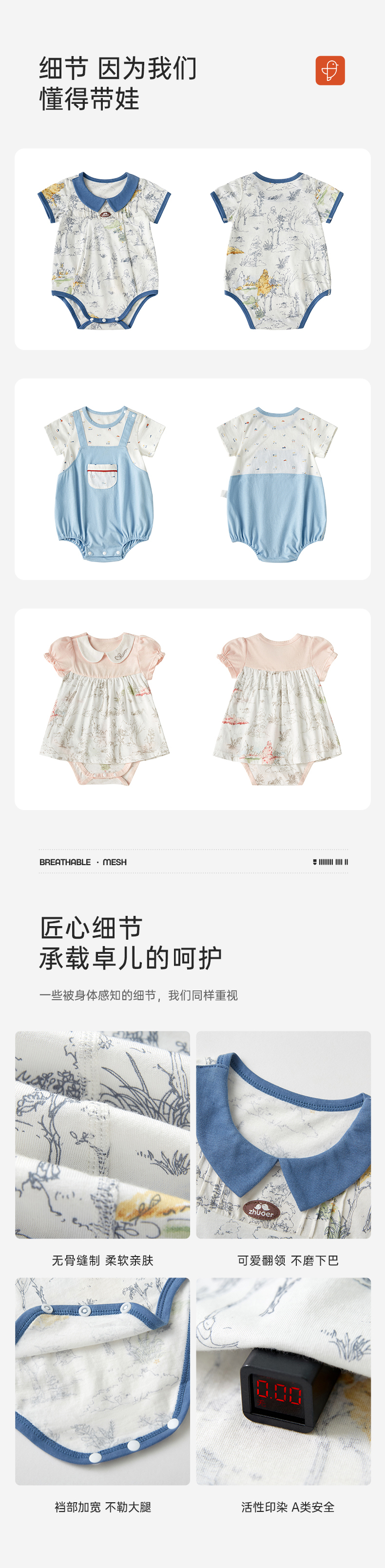 【夏款上新】卓儿新生儿纯棉宝宝爬服包屁衣柔软连体衣短袖衣服