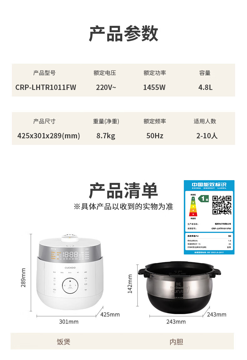 【团购展示】韩国原装进口电饭煲IH智能家用双压锅 5L CRP-LHTR1011FW