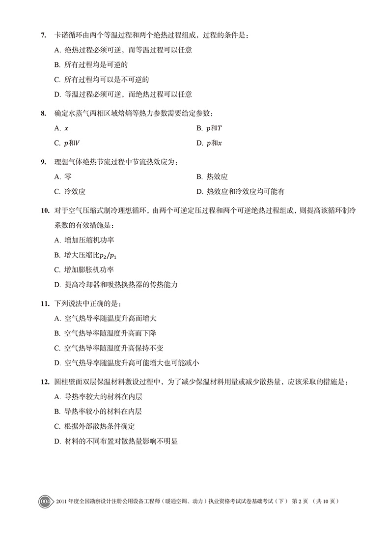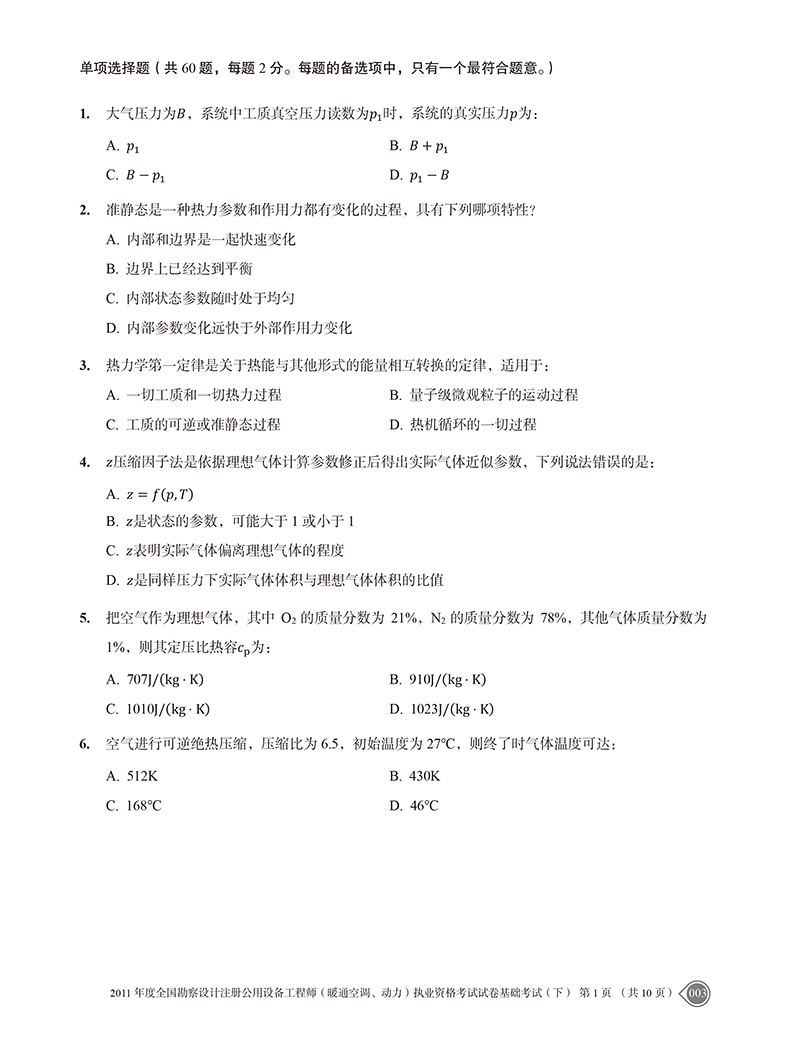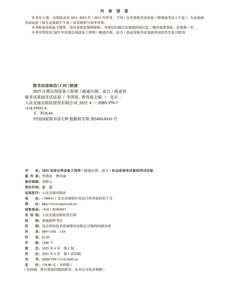 书名:2025注册公用设备工程师(暖通空调、动力)执业资格考试基础考试试卷