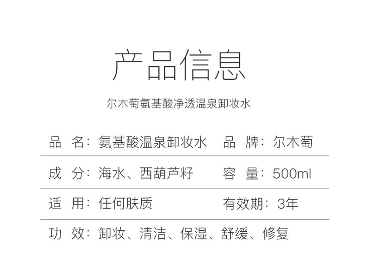 【送卸妆棉】韩国尔木萄氨基酸卸妆水女脸部温和清洁眼唇脸三合一按压瓶