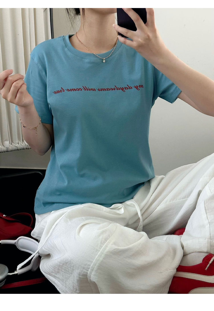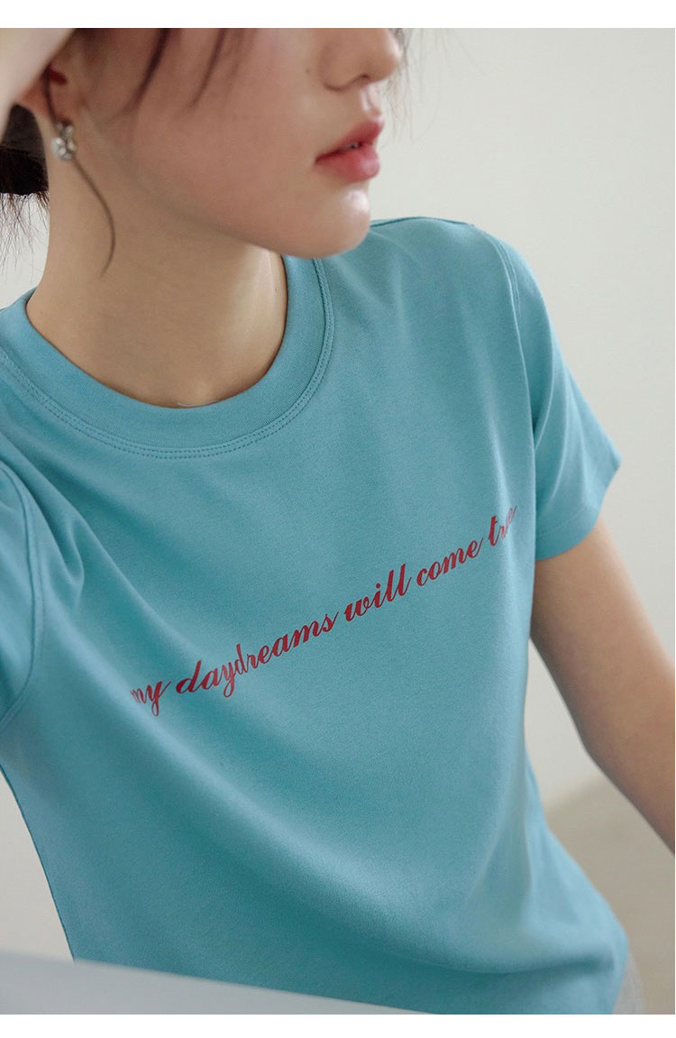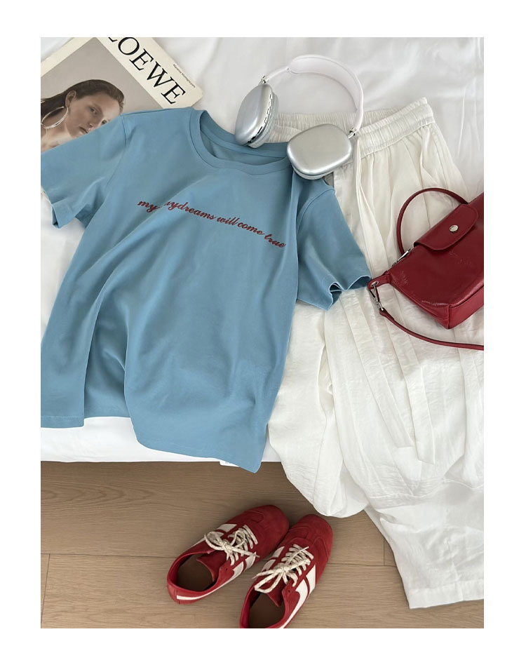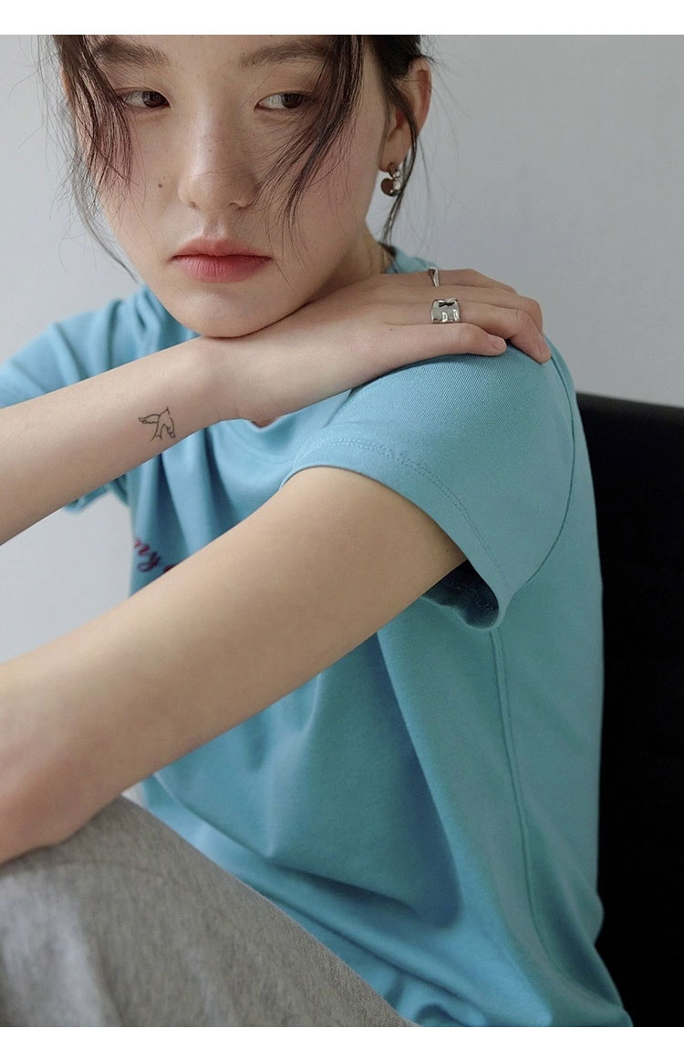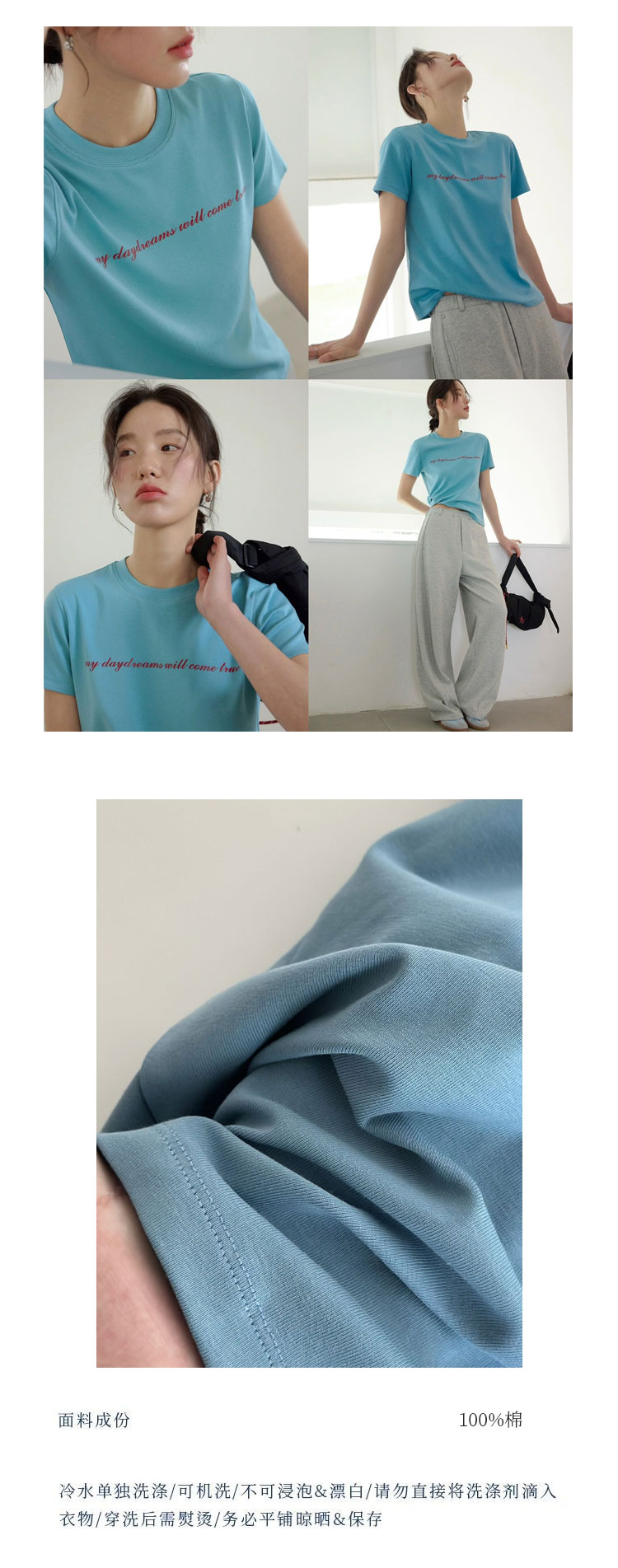 澄鱼生活瓦尔登湖蓝字母印花T恤 显白显瘦 优雅气质 夏日常备款 百搭时髦