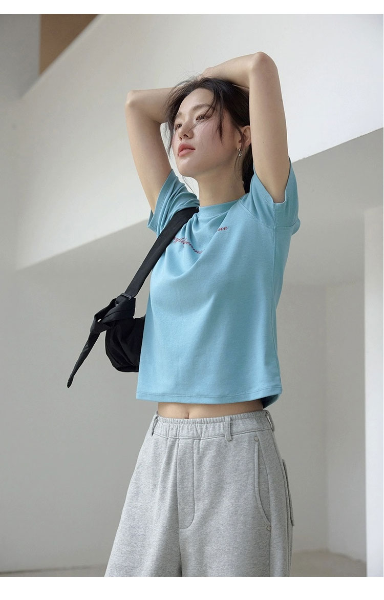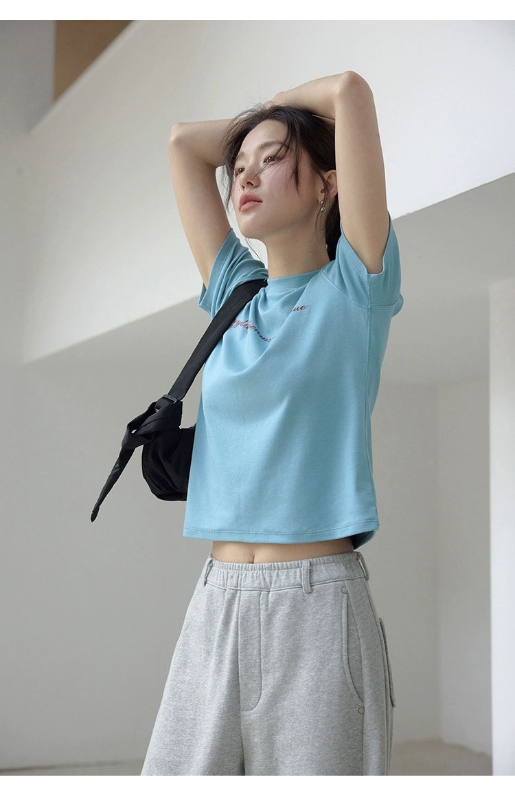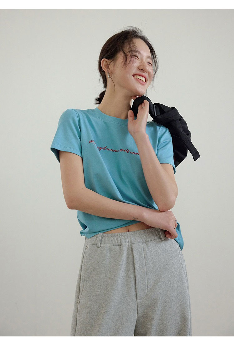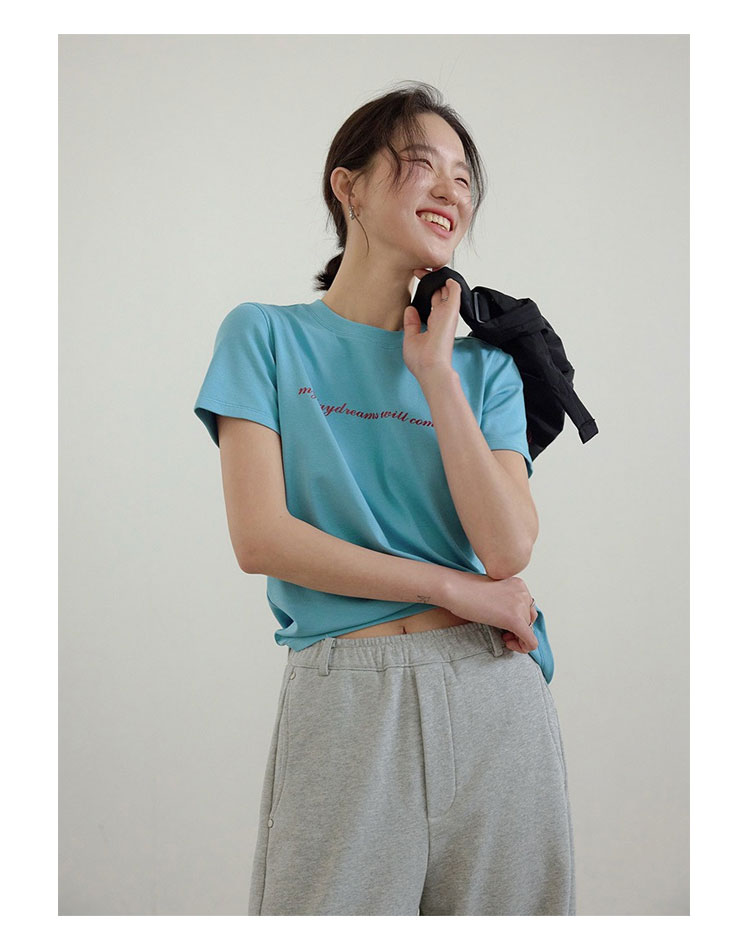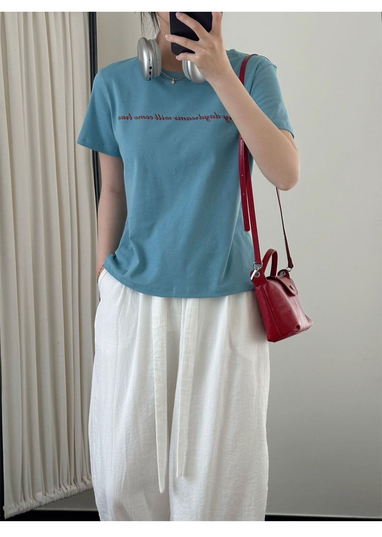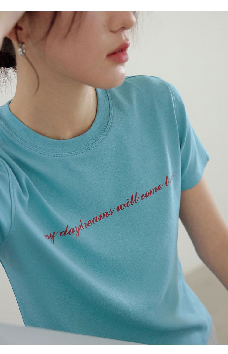 澄鱼生活瓦尔登湖蓝字母印花T恤 显白显瘦 优雅气质 夏日常备款 百搭时髦