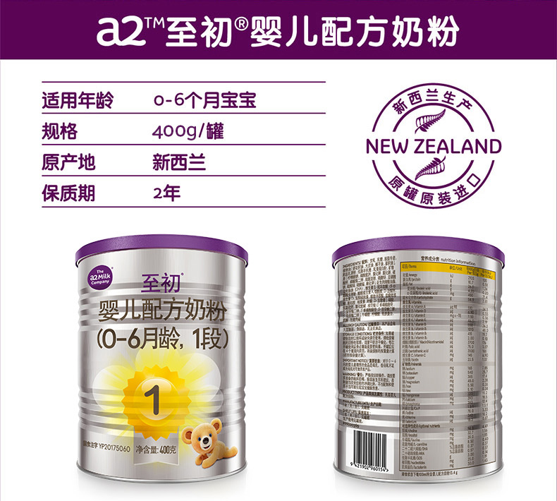 a2至初 至初 新西兰进口 婴儿配方奶粉 0-6月龄 1段 400g