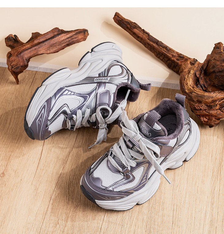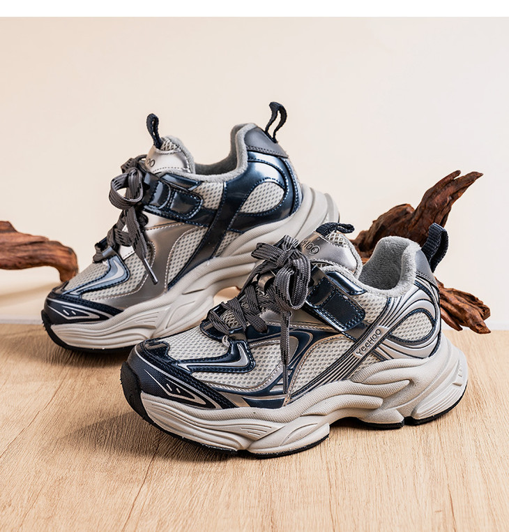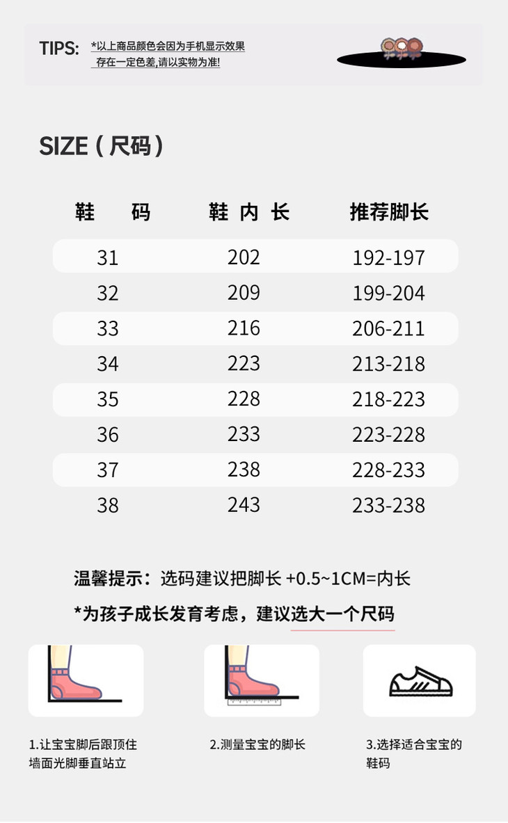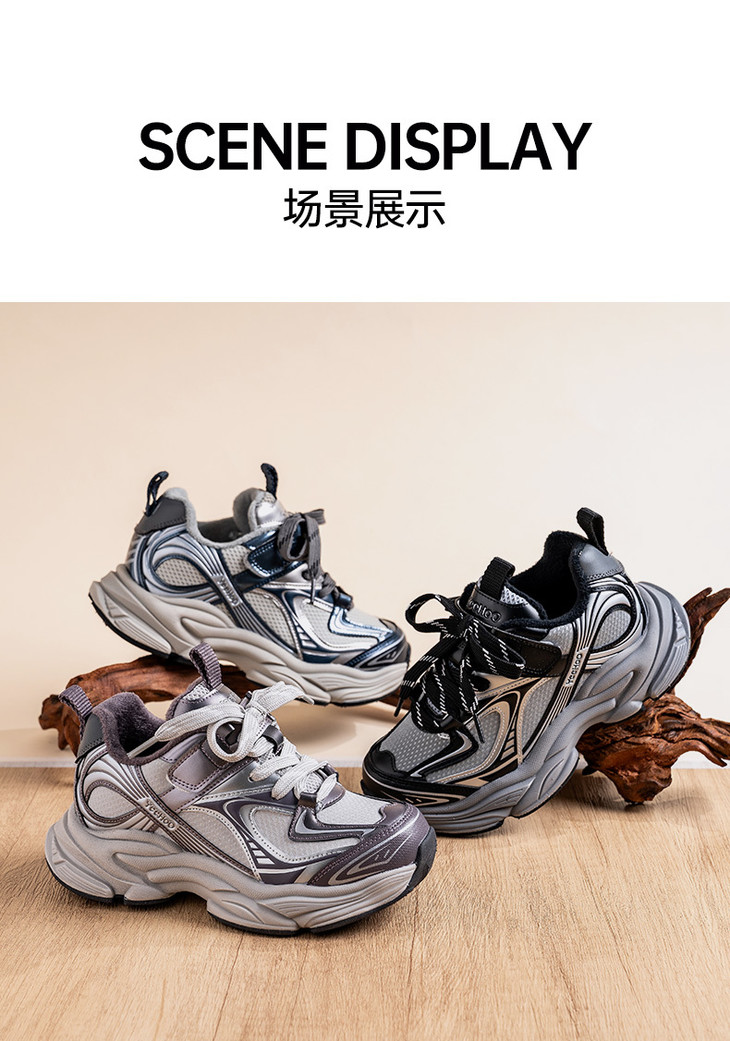 英氏YeeHo0童鞋冬季加绒潮酷运动鞋YHYLF2541803 货号:YHYLF2541803 颜色:灰蓝色、灰紫色、灰黑色 尺码:31-38 材质:鞋面 合成革;鞋底 EVA+TPR 鞋底采用高弹性 EVA 材质,弯曲自如,能让孩子走路没有束缚感,如同踩在云朵上一样舒服,非常适合孩子跑跳等活动。 鞋头进行加固处理,能防止孩子走路时踢到东西撞疼脚趾,为孩子的脚趾提供良好的保护。 为了稳定孩子的脚踝,防止走路时脚踝扭伤,英氏魔术贴运动鞋通常会对后跟进行加固处理 采用坚硬的材料或特殊的结构设计,为后跟提供有力的支撑,帮助孩子养成正确的走路姿势。