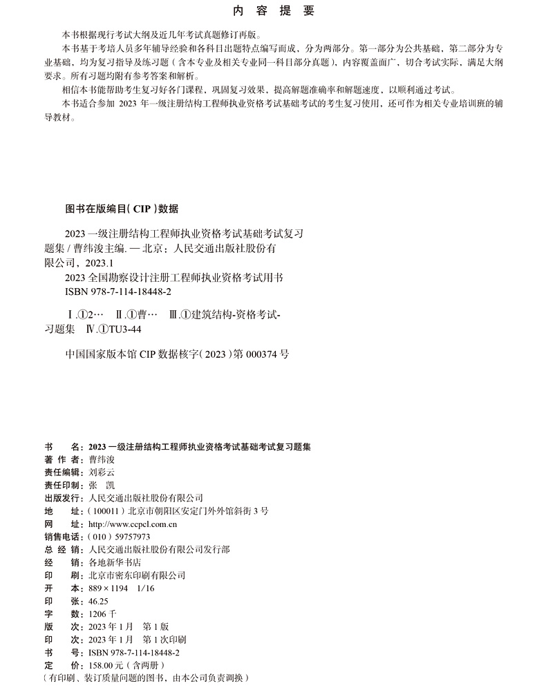 书名:2023一级注册结构工程师执业资格考试基础考试复习题集