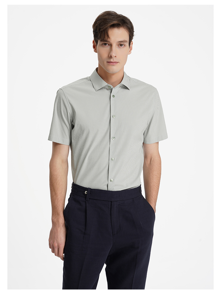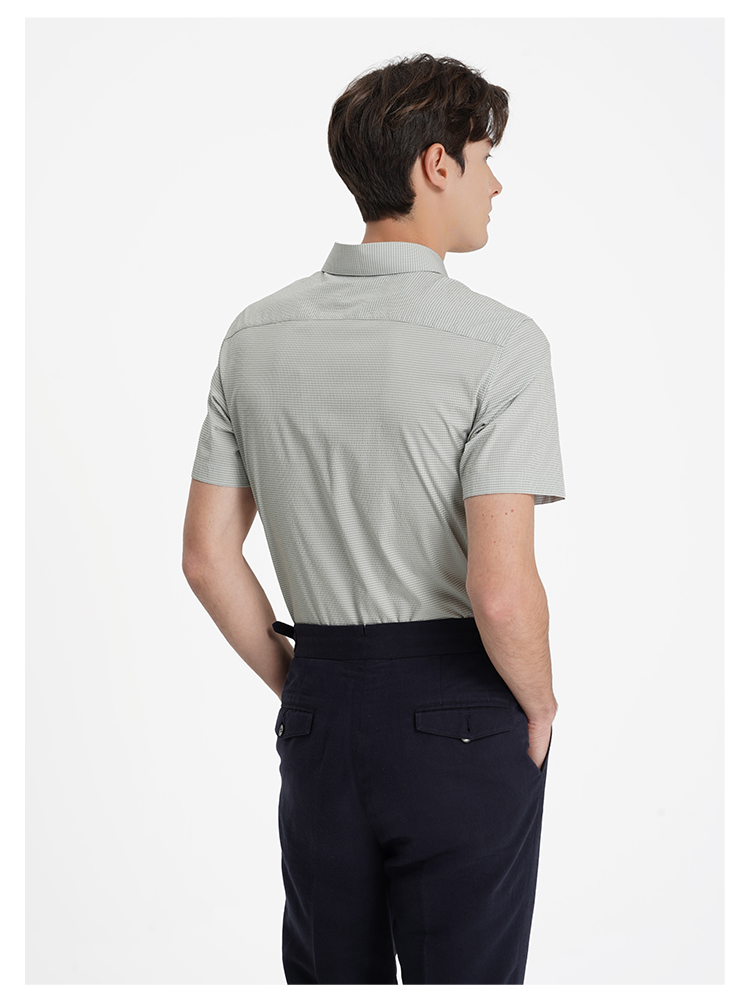 callisto雾感绿微泡肌理优雅意式领短袖衬衫