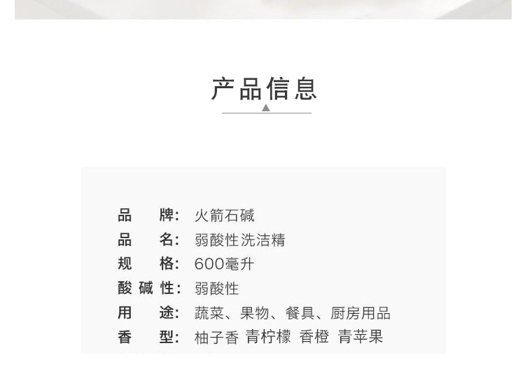 2瓶|【一般贸易】日本 ROCKET 火箭石碱 果蔬餐具洗洁精西柚香 600ML(新老包装随机发货)