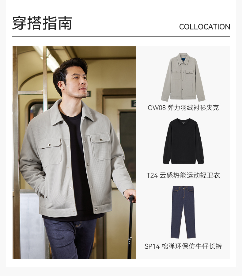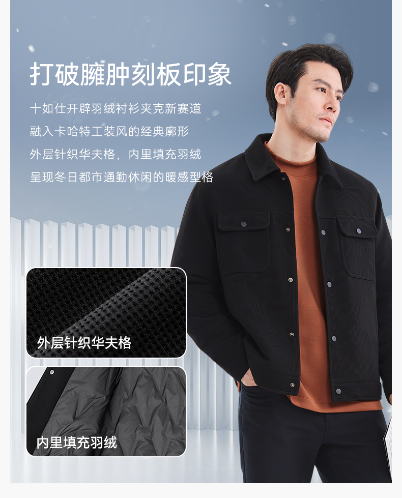 十如仕梭织华夫格弹力羽绒保暖夹克-OW08