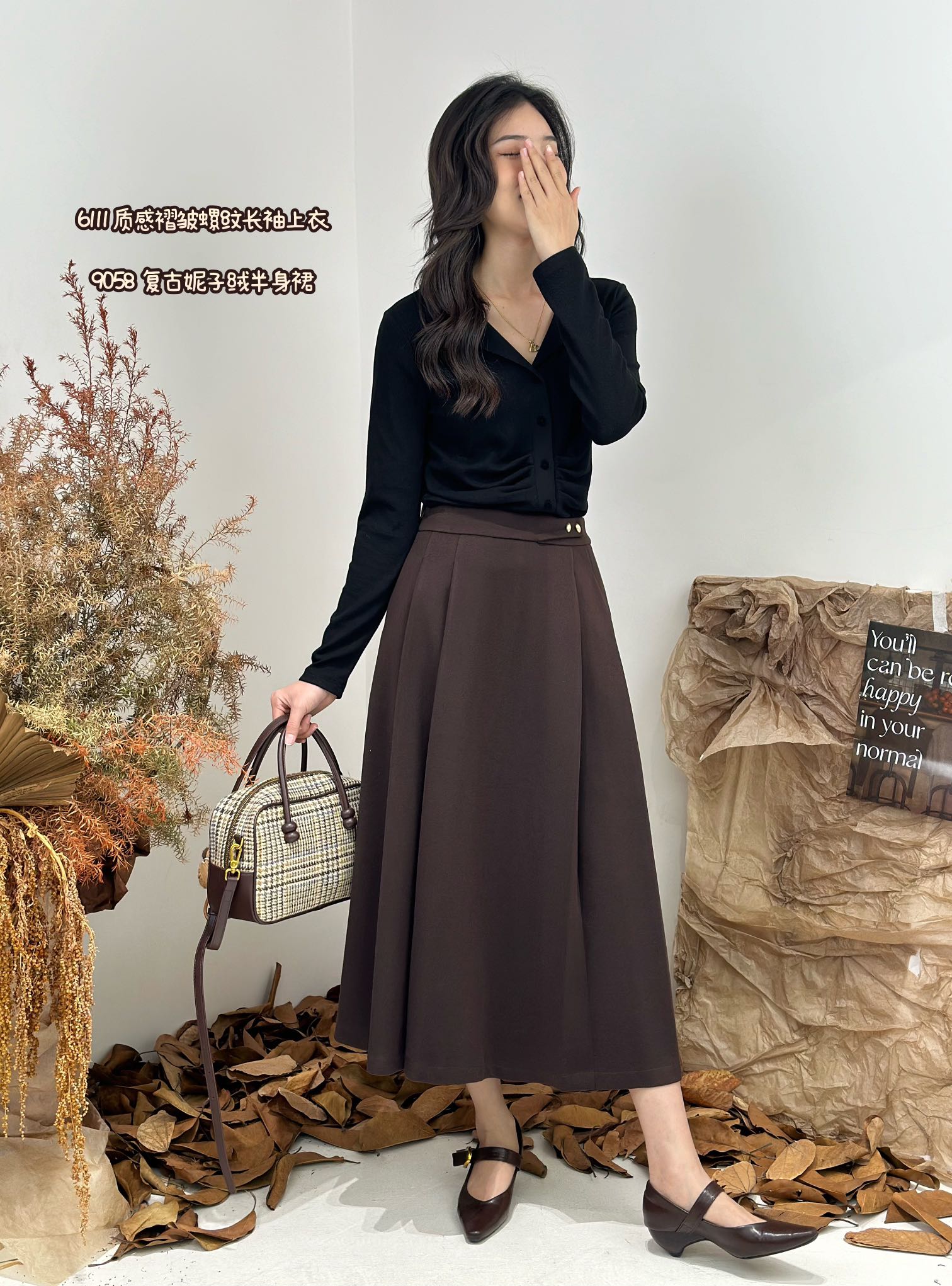 Q49058#时尚复古百褶半身裙