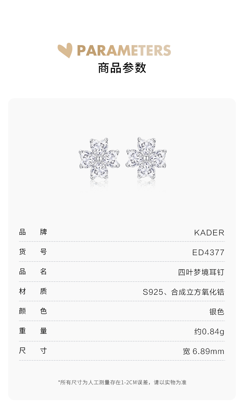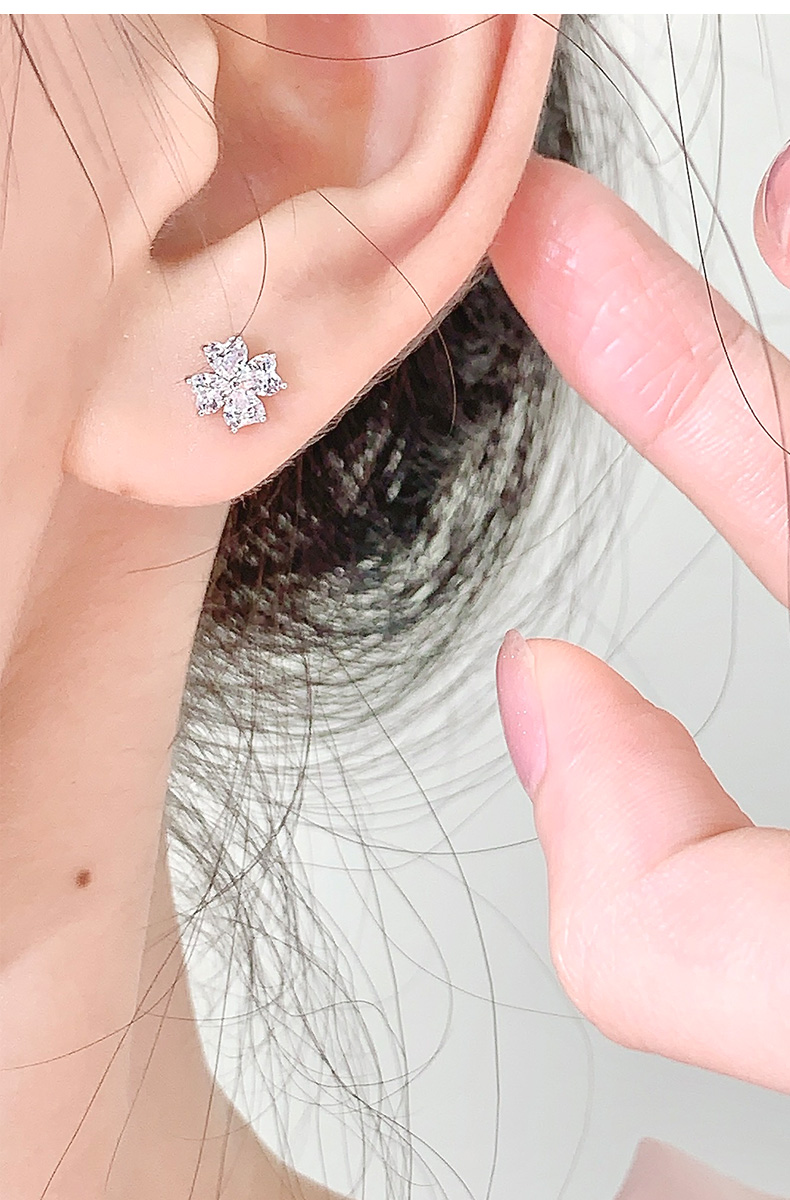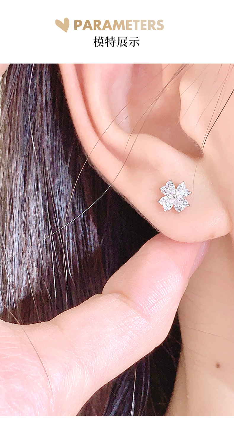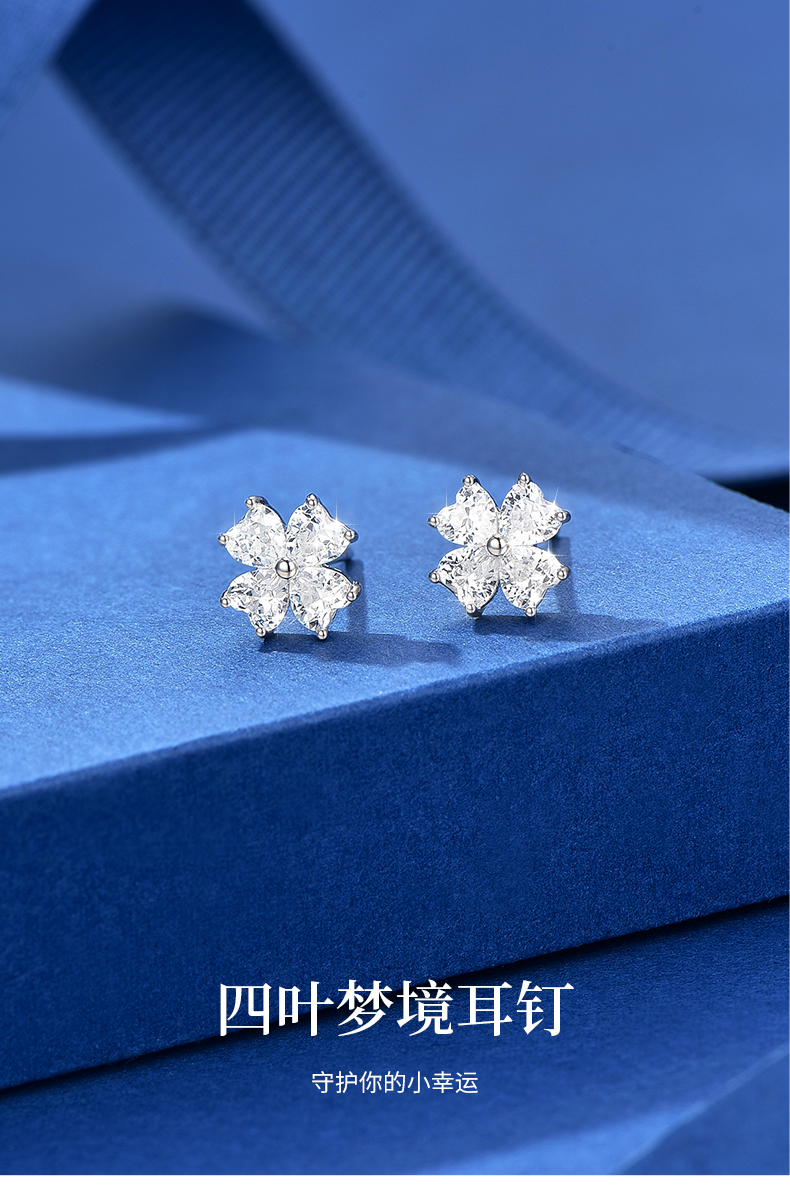 卡蒂罗/KADER 幸运四叶草 四叶梦境耳钉 爱心锆石满镶宝石轻奢精致养耳洞耳饰 灵动清新睡觉免摘 925银 开学礼