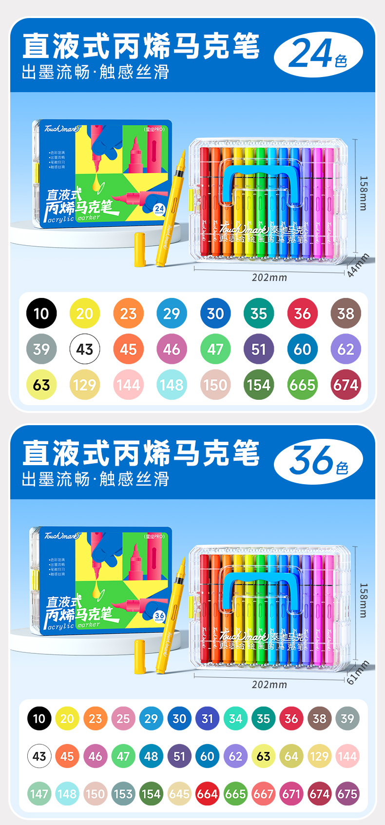 Touchmark直液式丙烯马克笔星绘pro升级软头丙烯马克笔翻翻乐丙马绘画笔