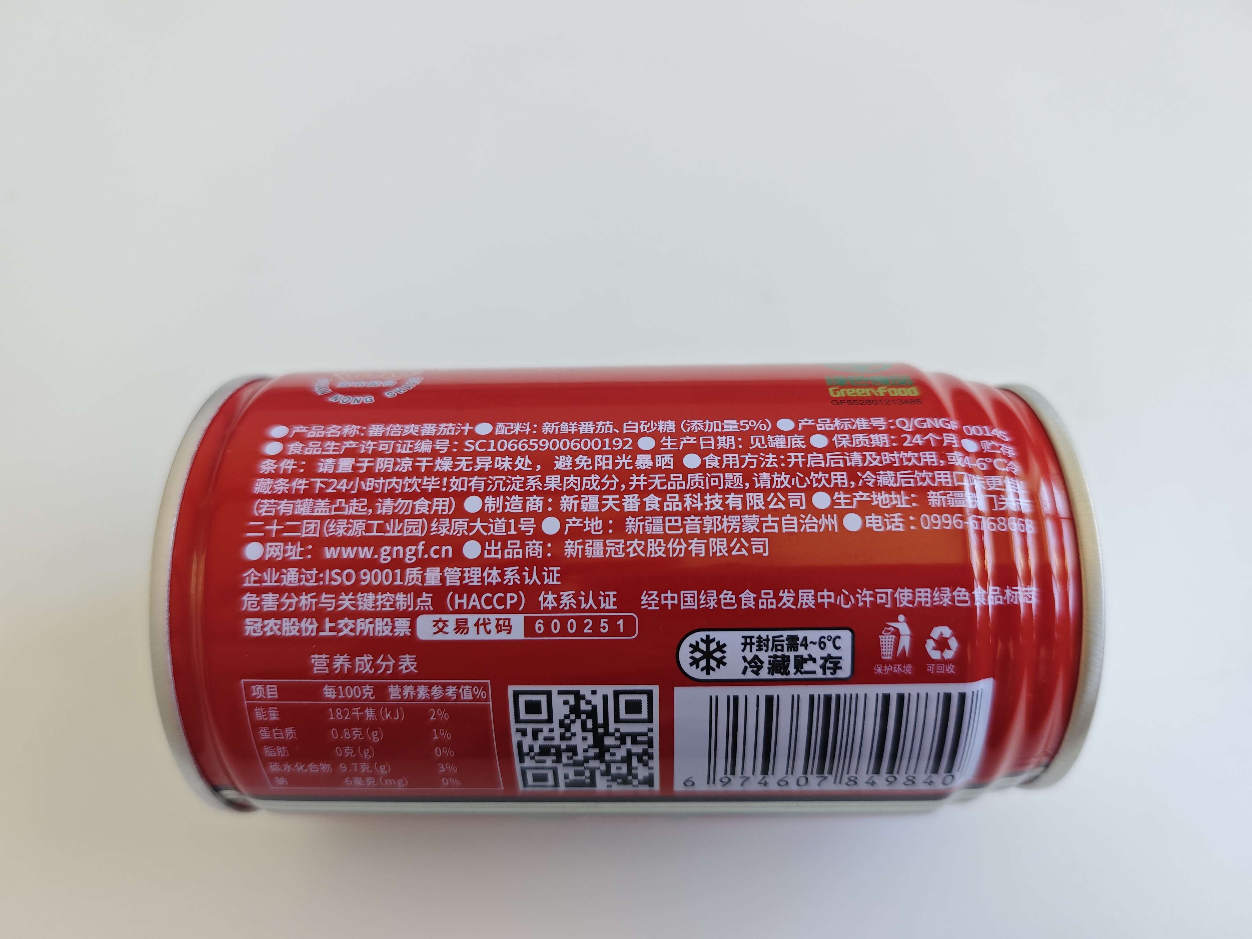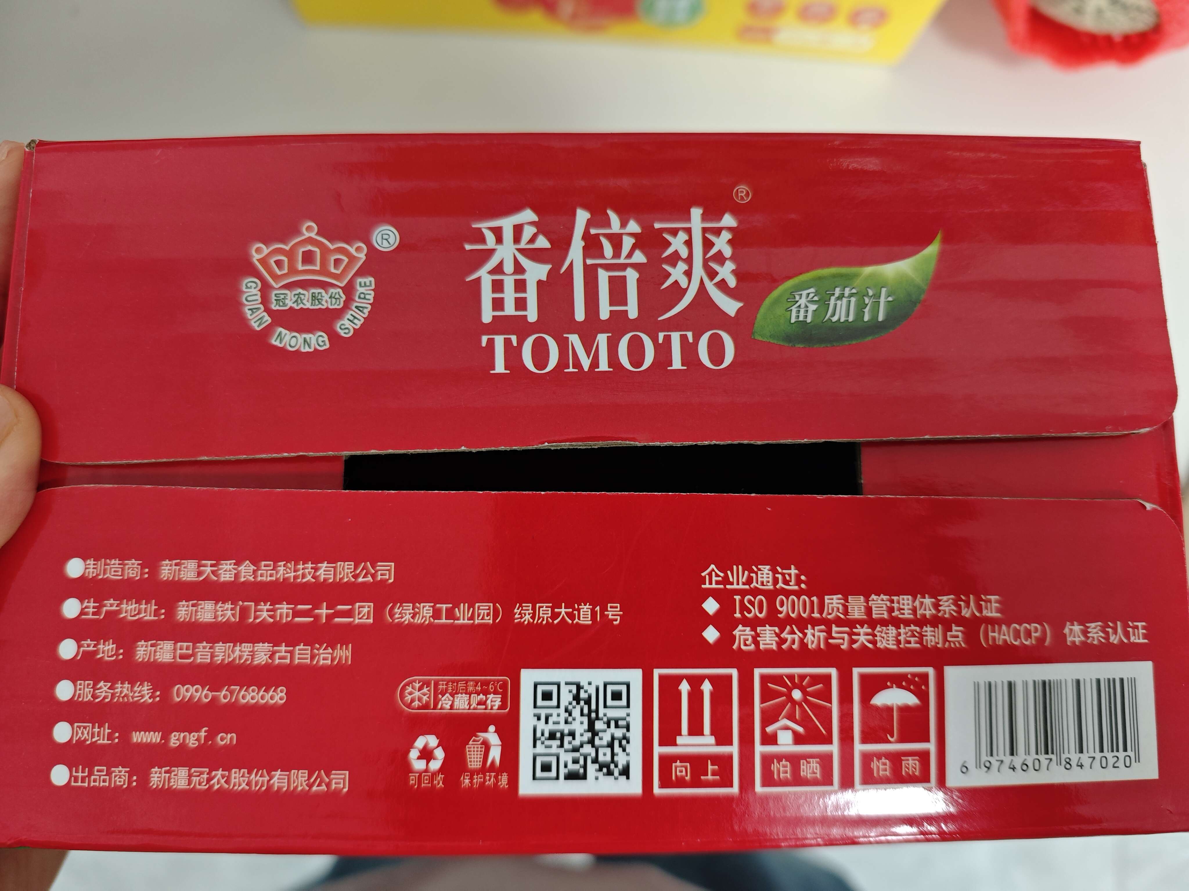 【产品名称】新疆冠农番倍爽番茄汁 310ml/罐