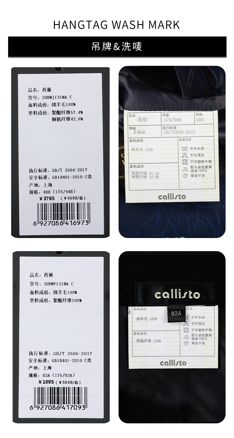 callisto高阶商务系列藏青绵羊毛西服