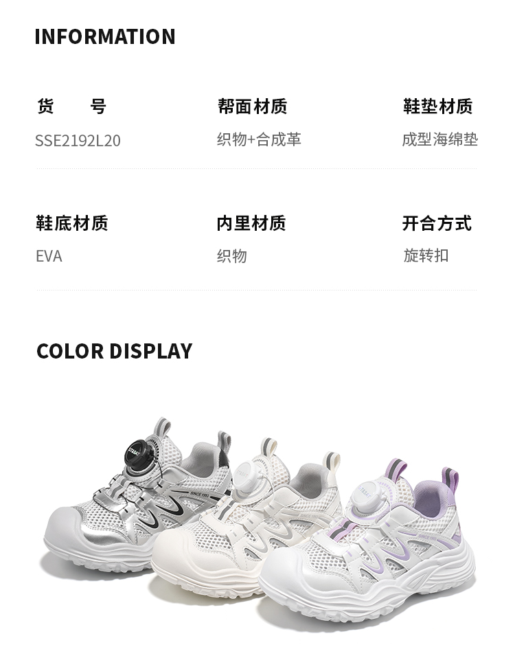 【童鞋】星期六休闲免系带男女童运动老爹鞋SSE2192L20