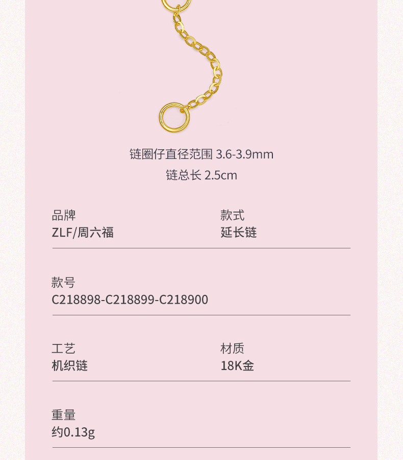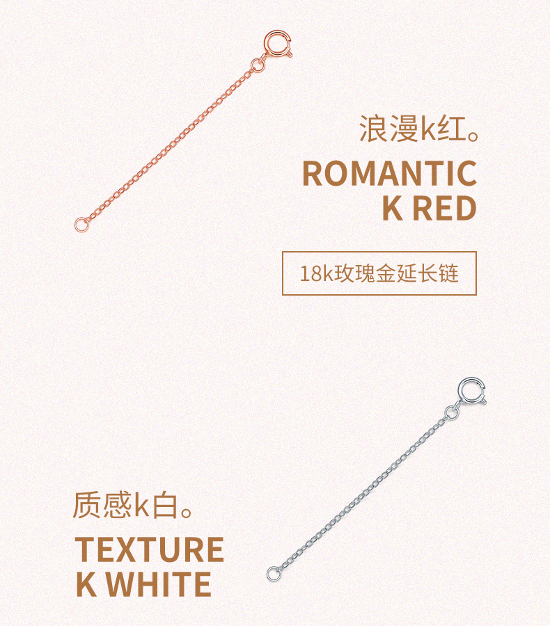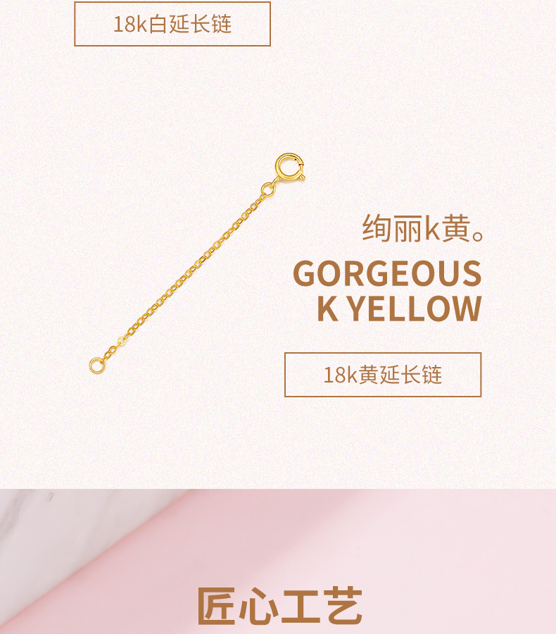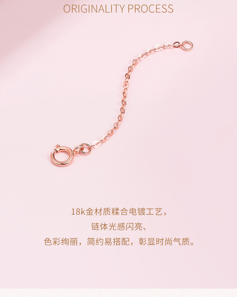 周六福 18K玫瑰金延长链 项链加长尾链 可调节 黄白红三色可选 多彩