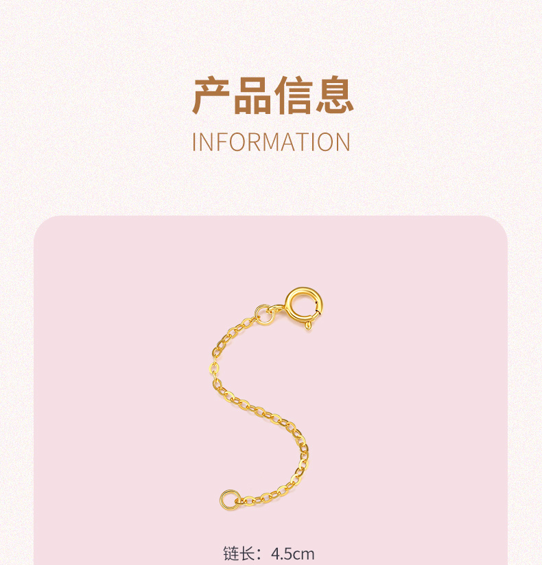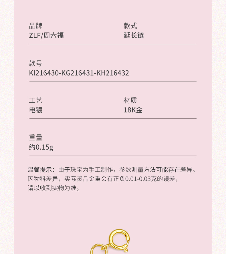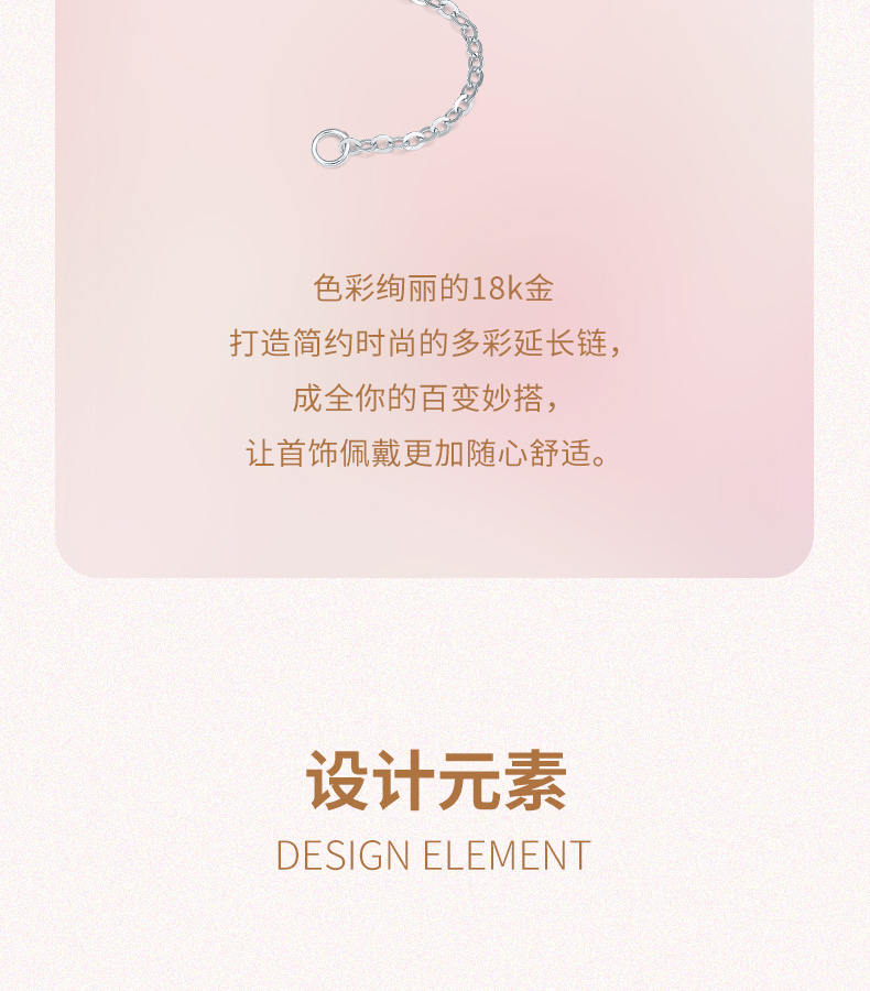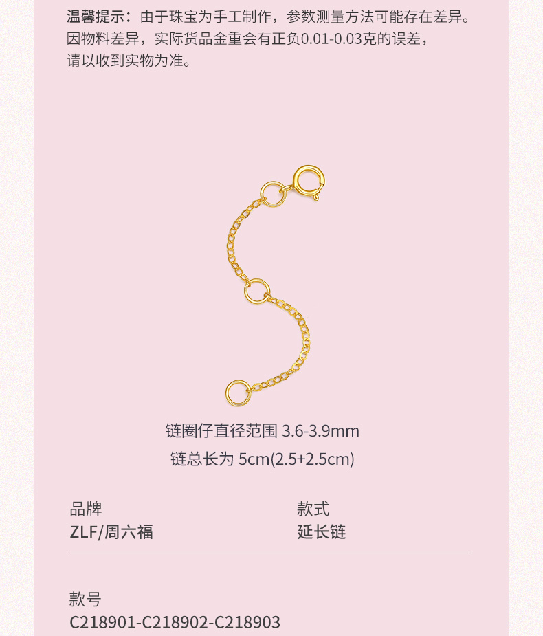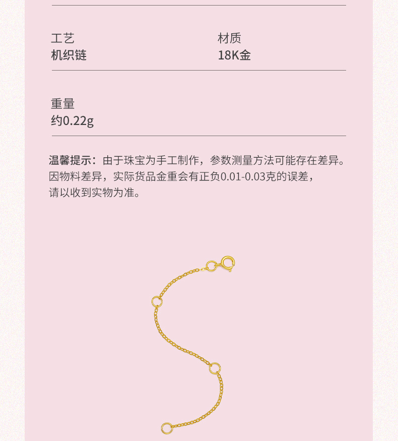 周六福 18K玫瑰金延长链 项链加长尾链 可调节 黄白红三色可选 多彩
