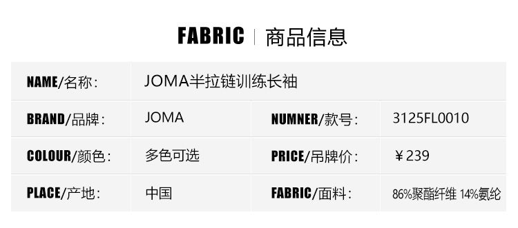 SFS正品 JOMA荷马2022中乙无锡吴钩球员版半拉链长袖训练服