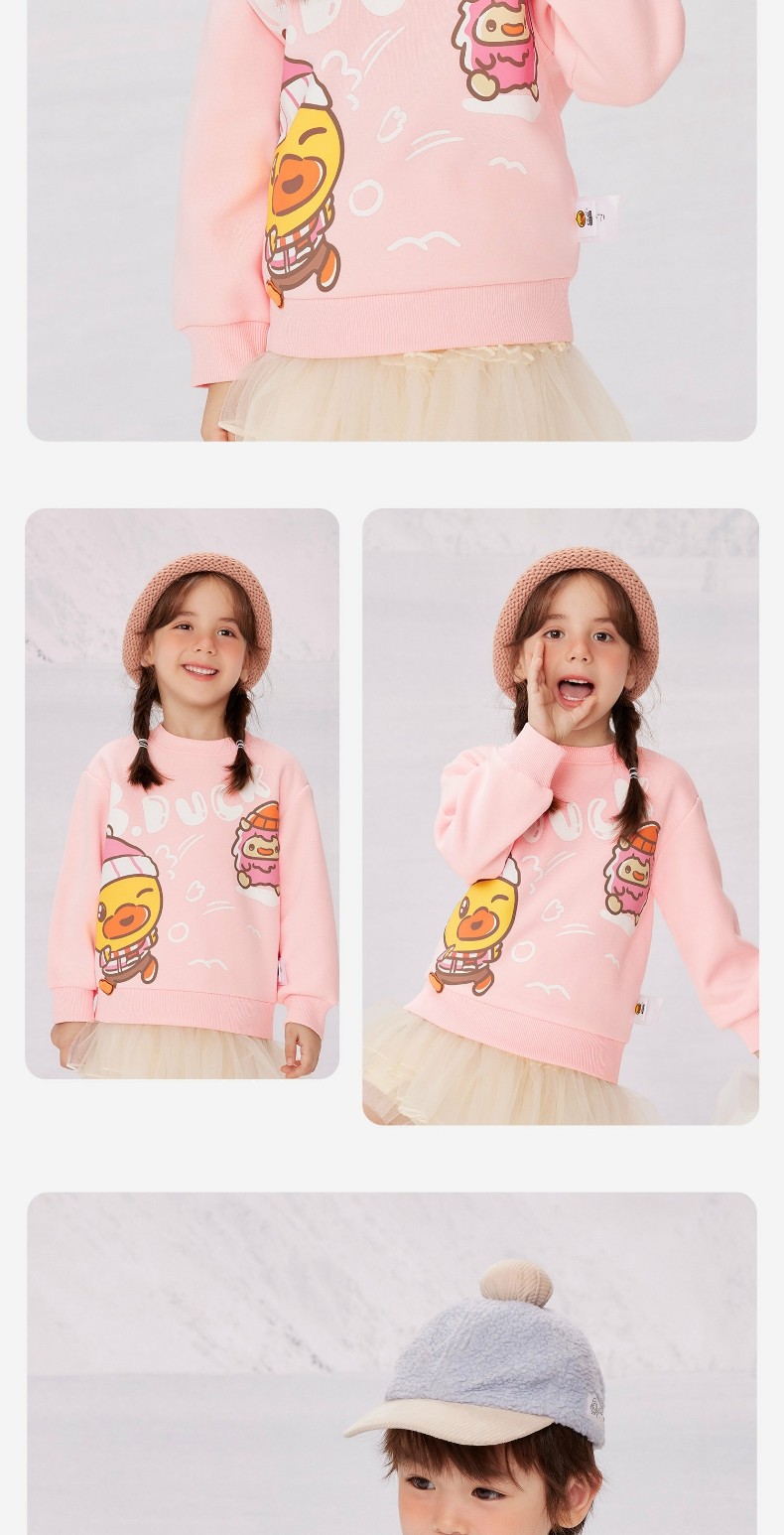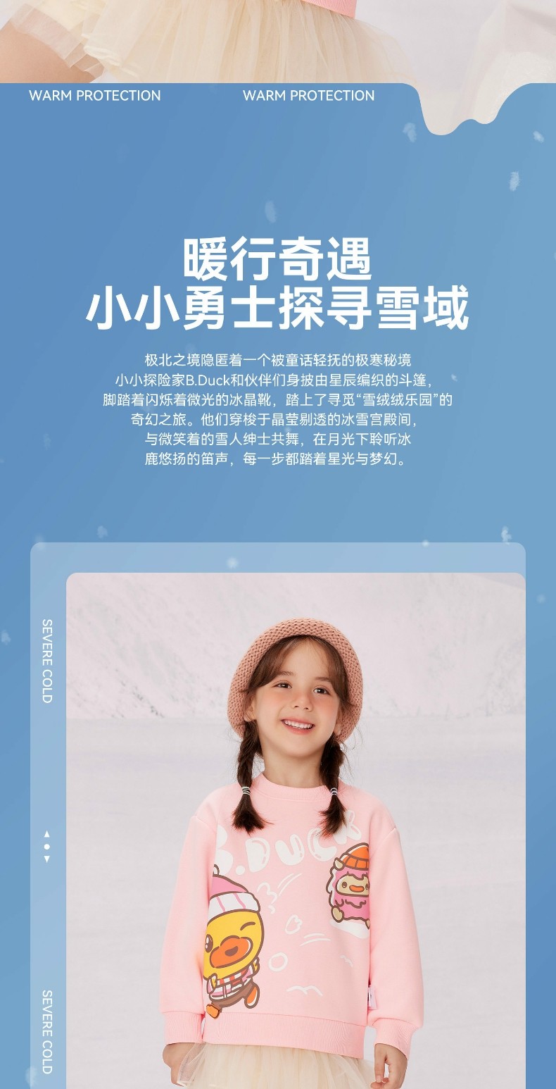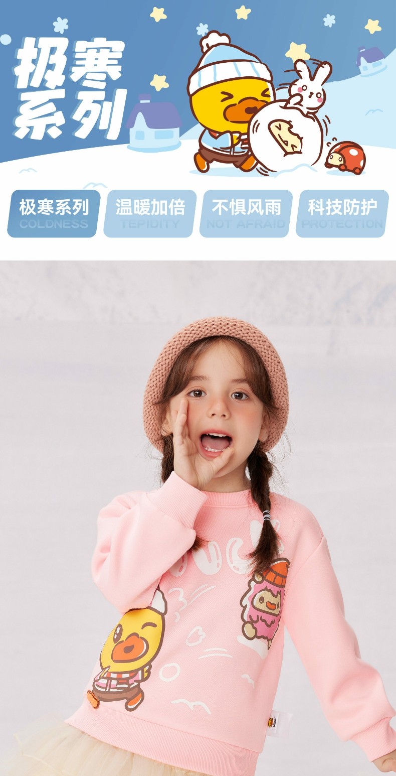 bduck小黄鸭童装女童卫衣加绒儿童长袖上衣休闲冬装保暖90-130 BF5531071