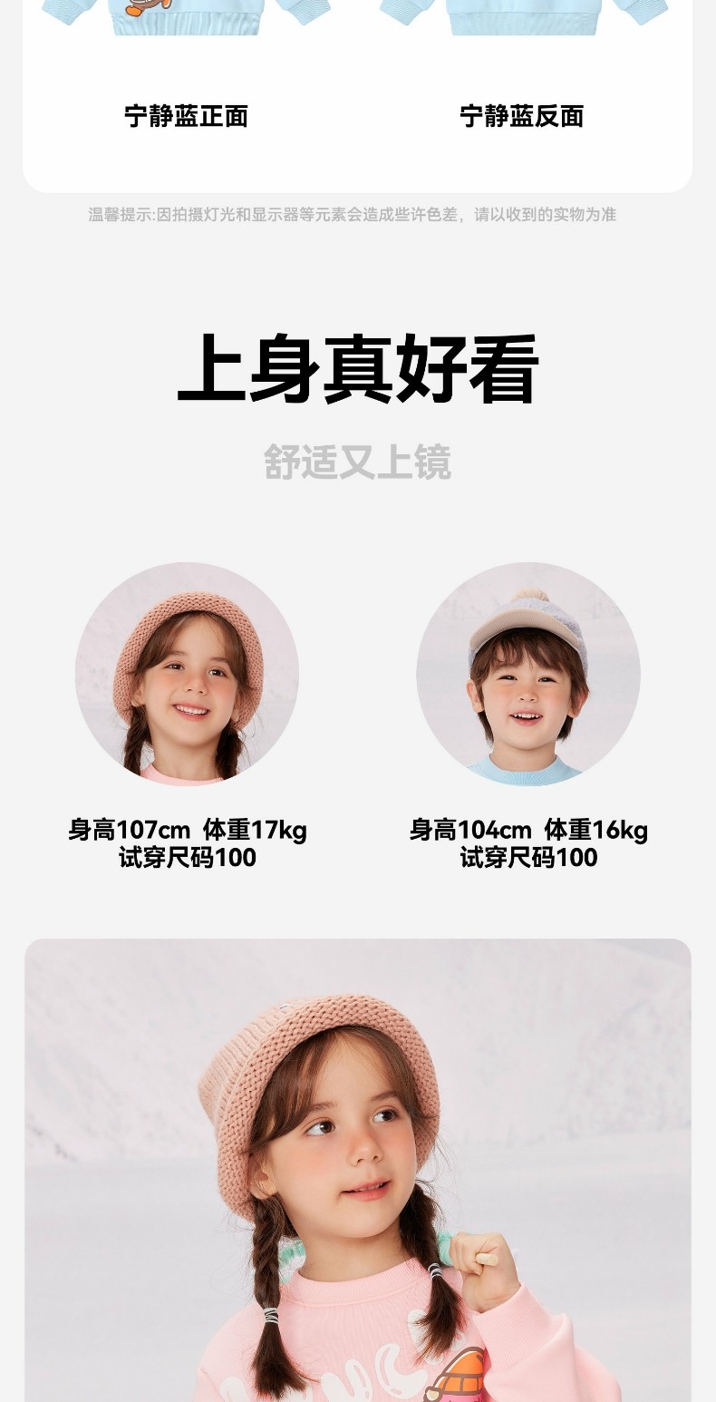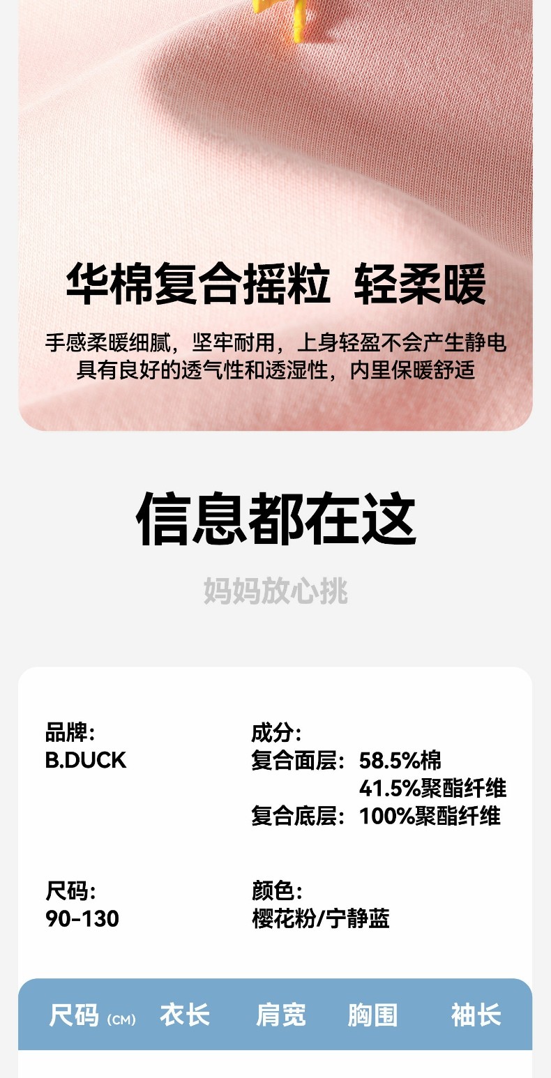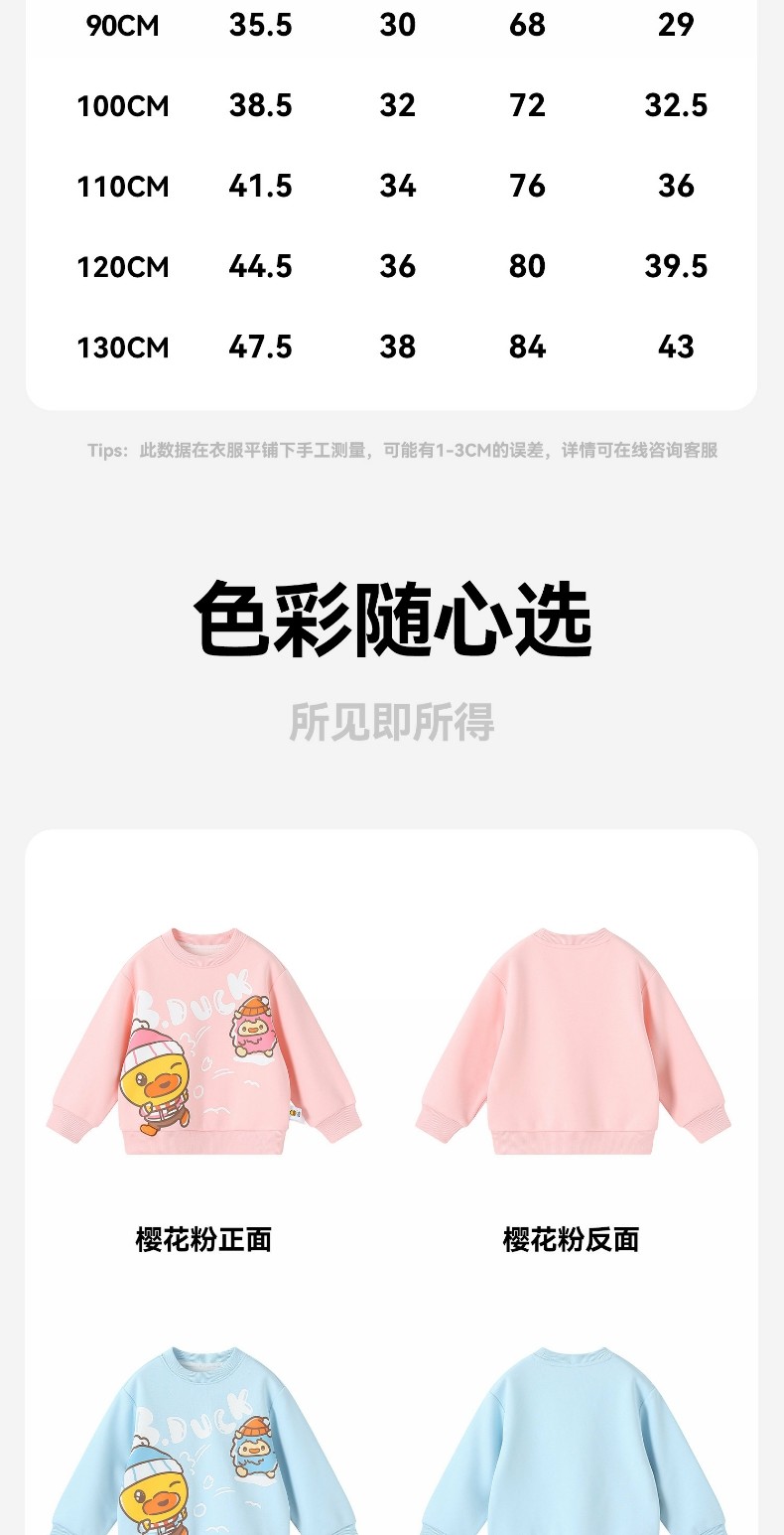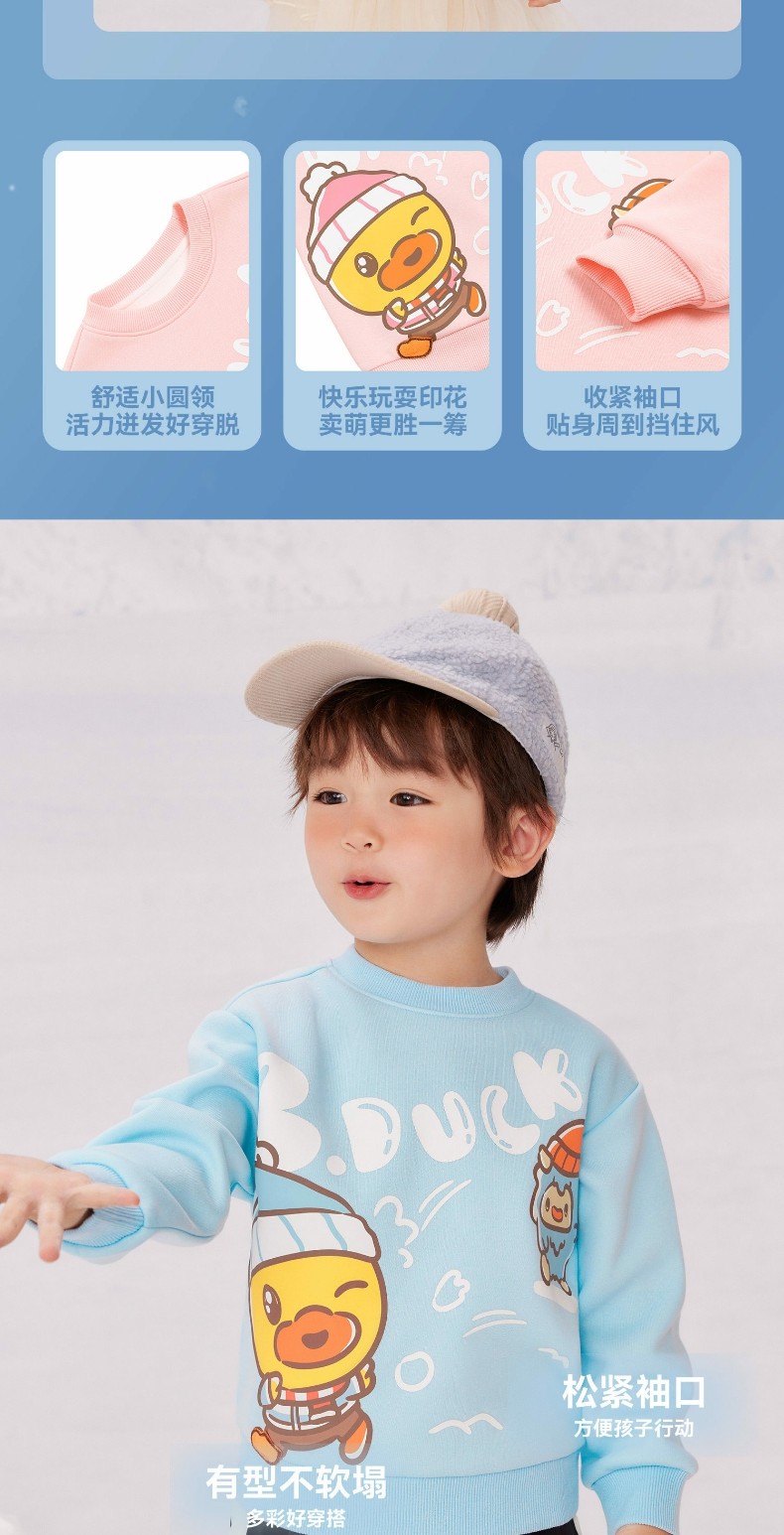 bduck小黄鸭童装女童卫衣加绒儿童长袖上衣休闲冬装保暖90-130 BF5531071