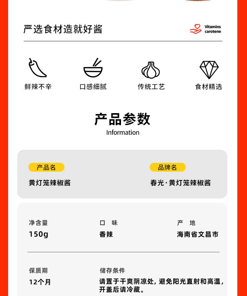 黄灯笼辣椒酱150g香辣型 厨房调味