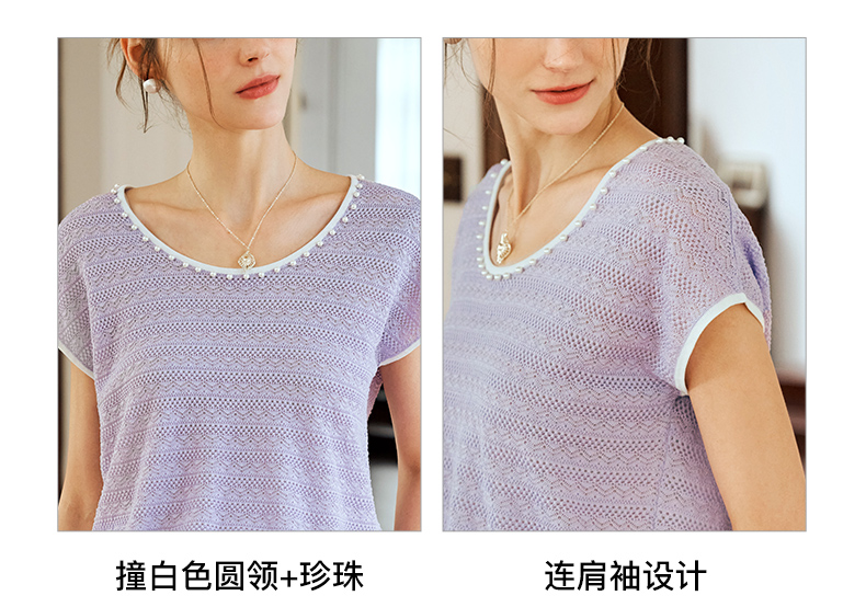 OLrain欧芮儿法式紫色针织衫女夏季2024年新款小香风圆领短袖