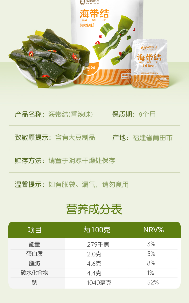 孕味食足孕妇可以吃的香辣海带结即食 孕期解馋辣味小吃零食丝片