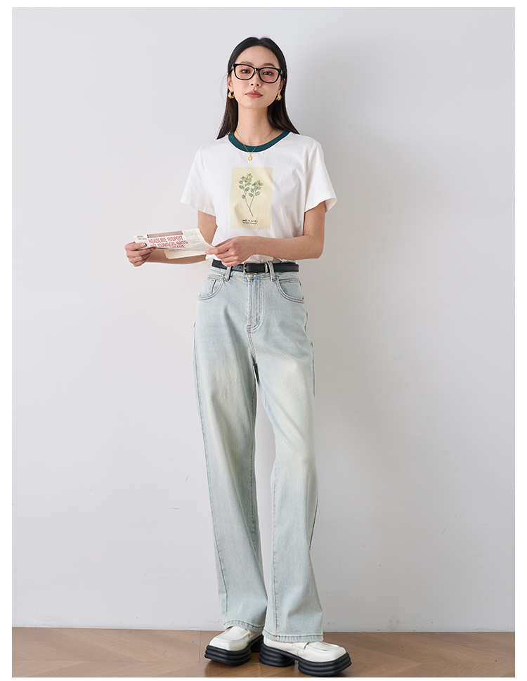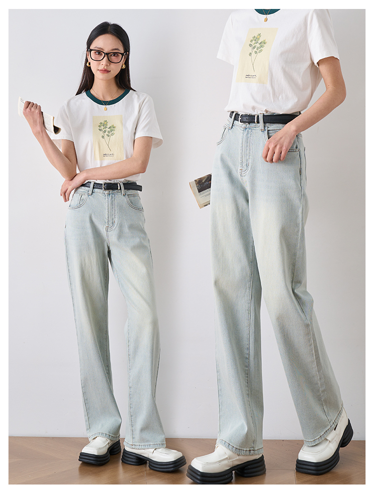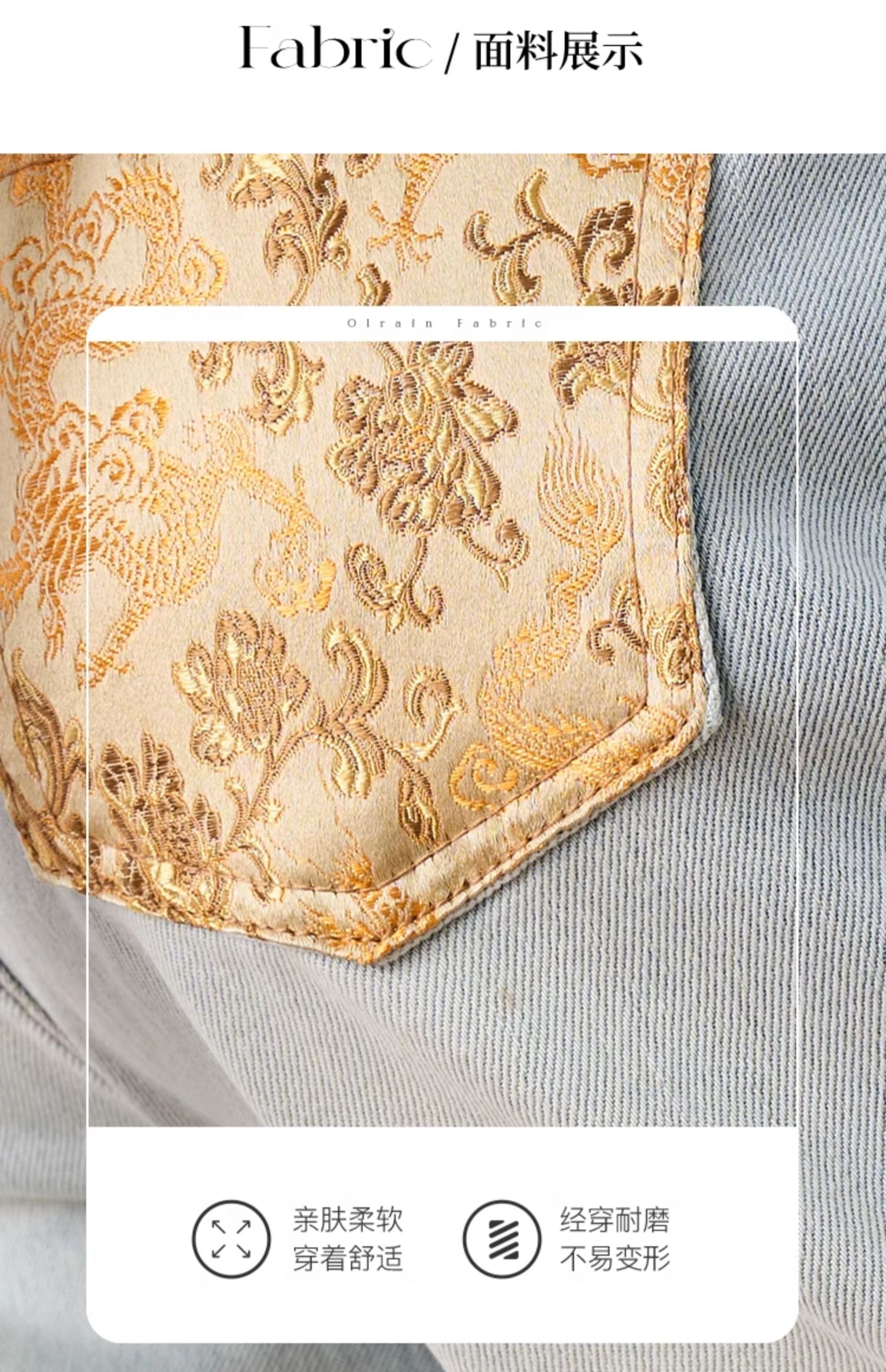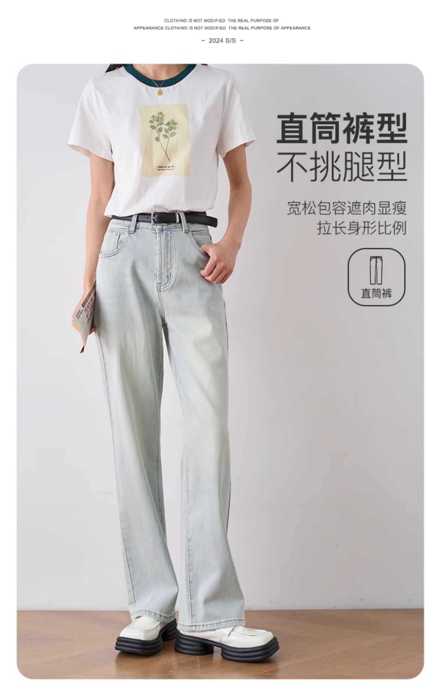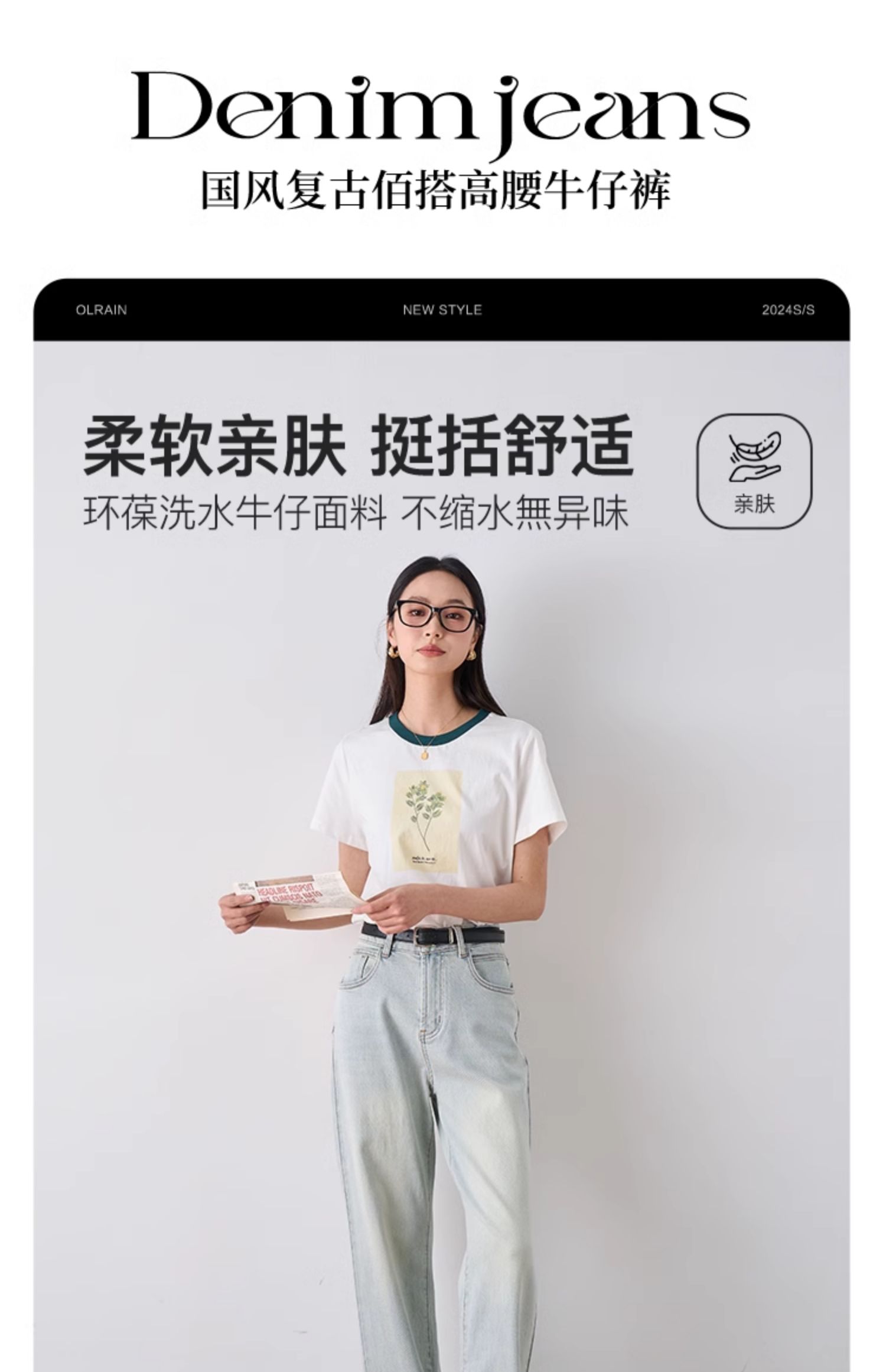 OLrain欧芮儿阔腿牛仔裤女夏季2025年新款国风复古百搭高腰长裤