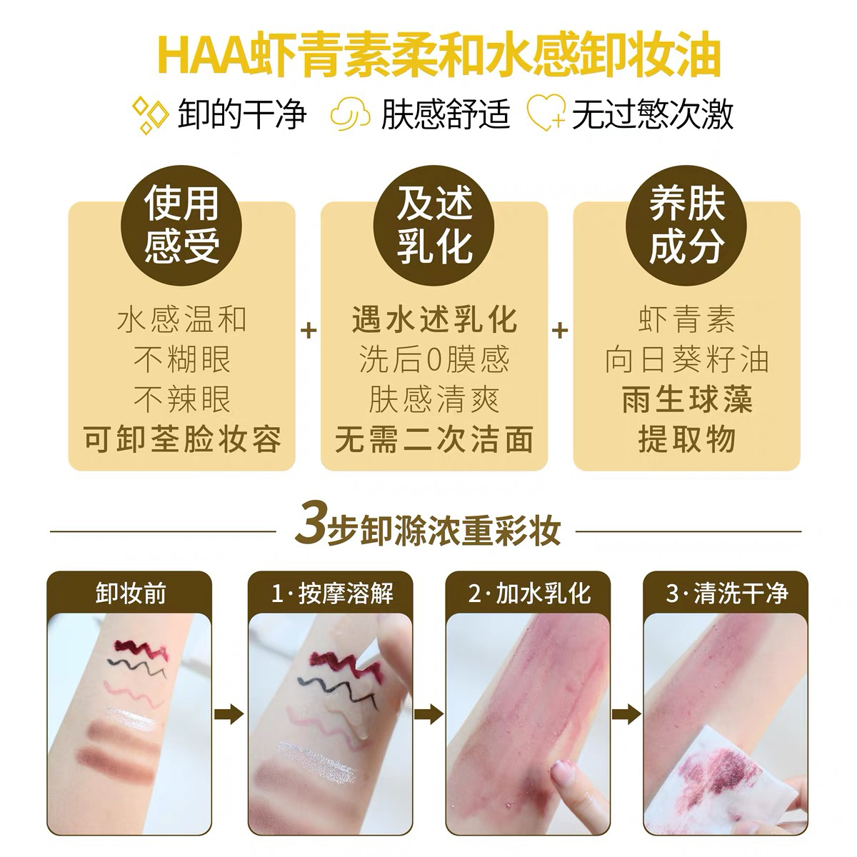 【海关监管】水油双卸!haa虾青素卸妆油-敏感肌-眼唇卸三合一会员5折