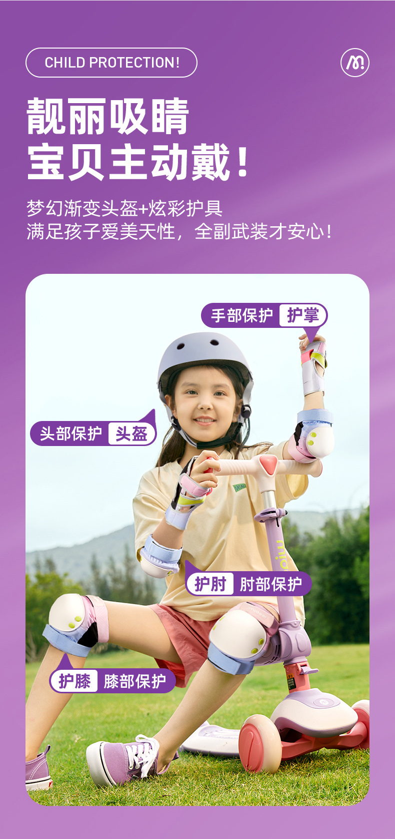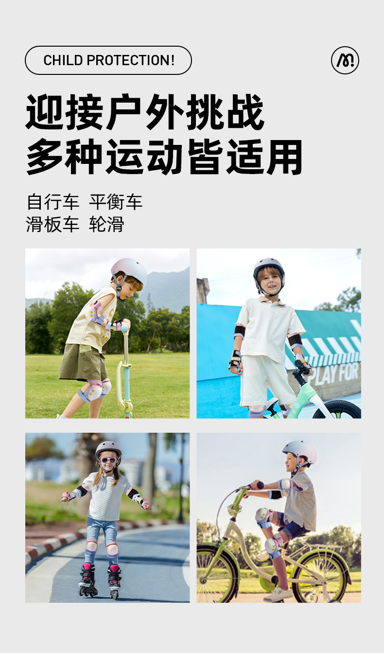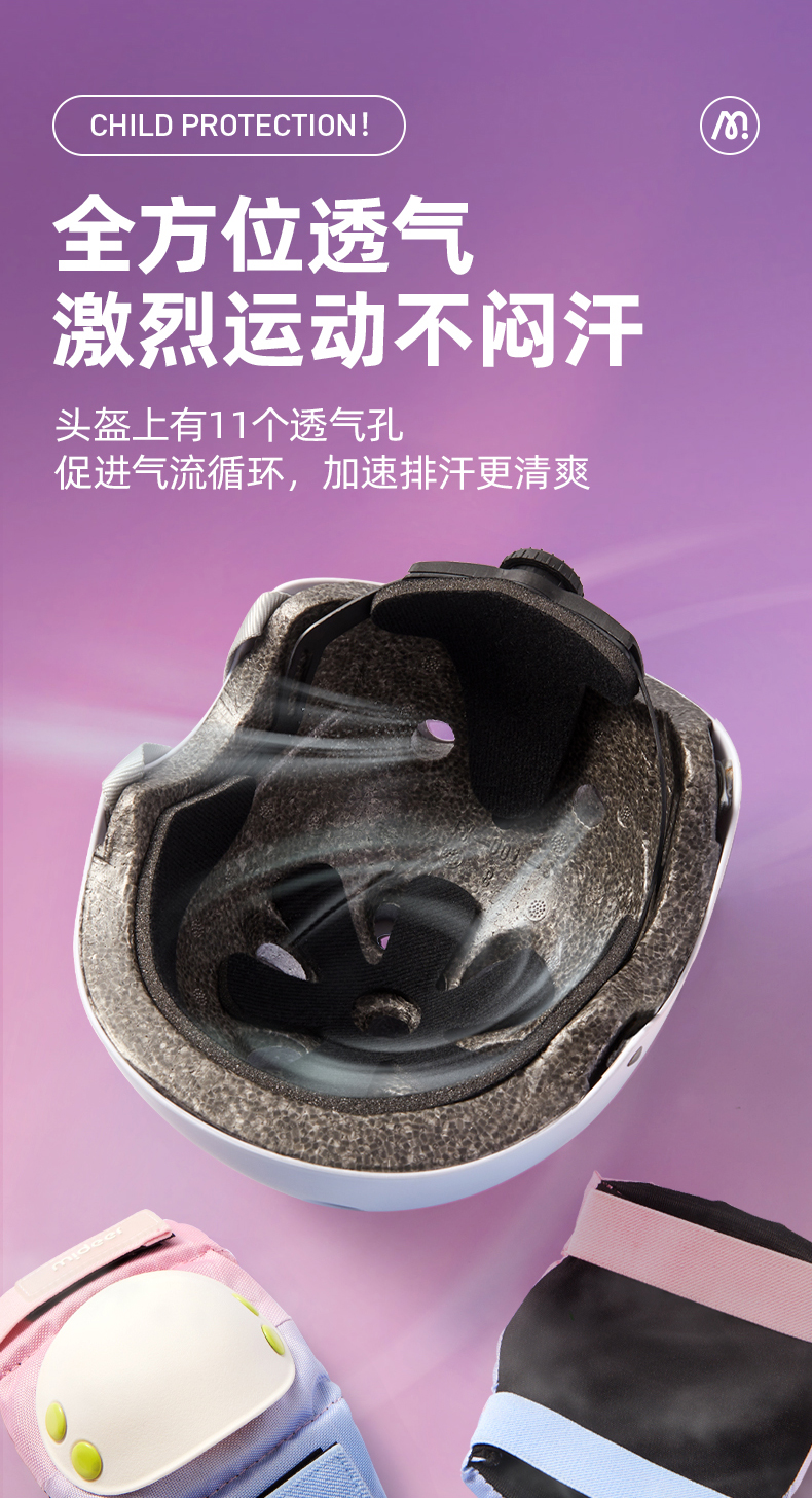 mideer弥鹿儿童护具轮滑骑行头盔男女款平衡车自行车滑板溜冰护膝