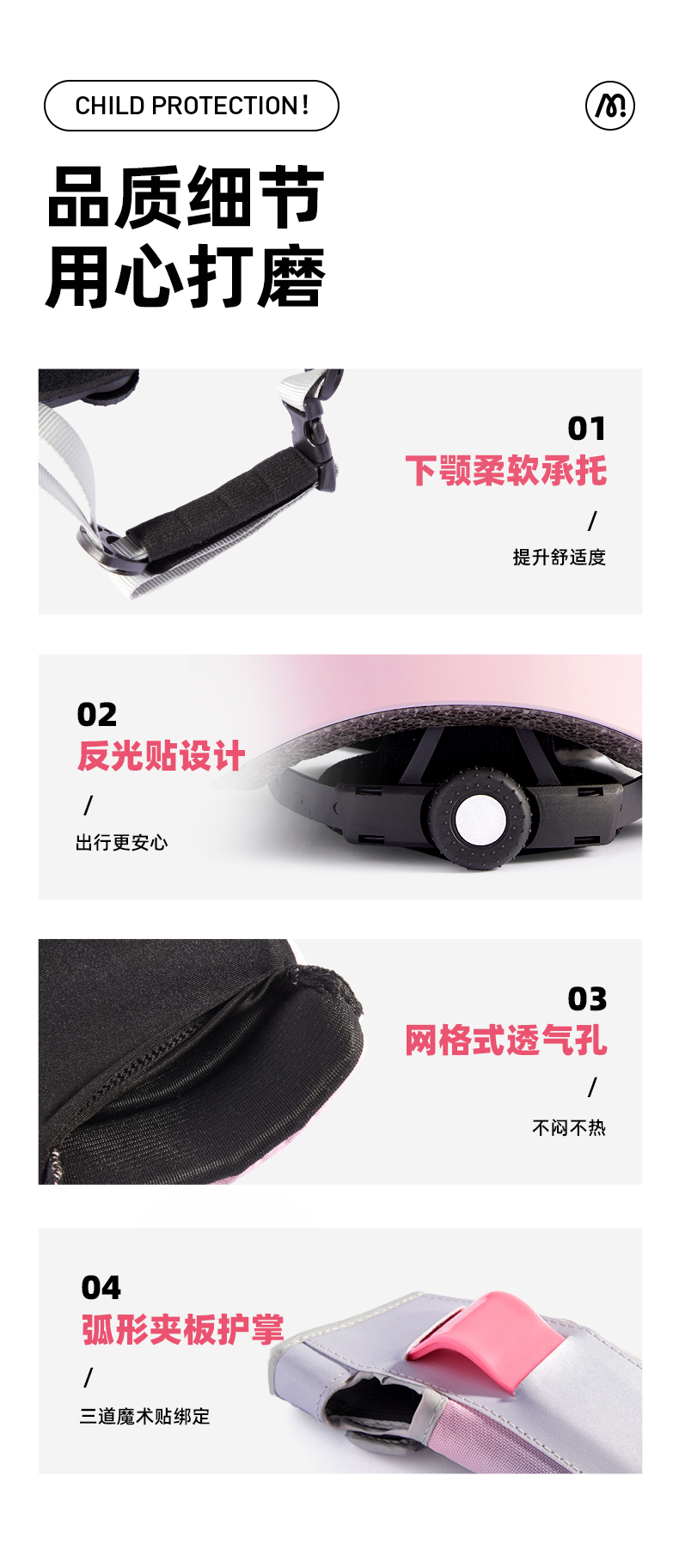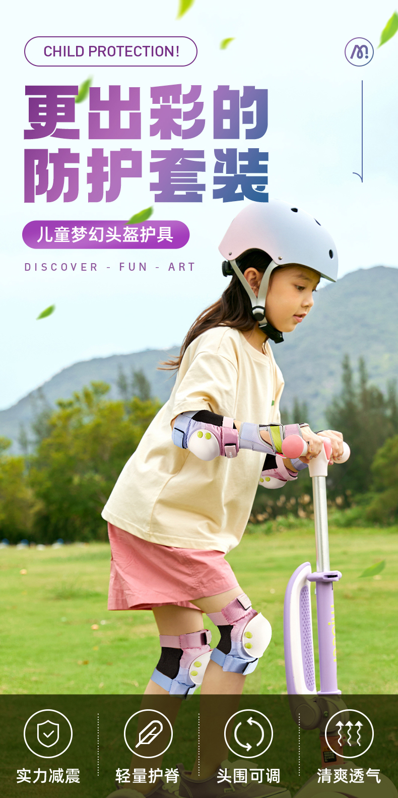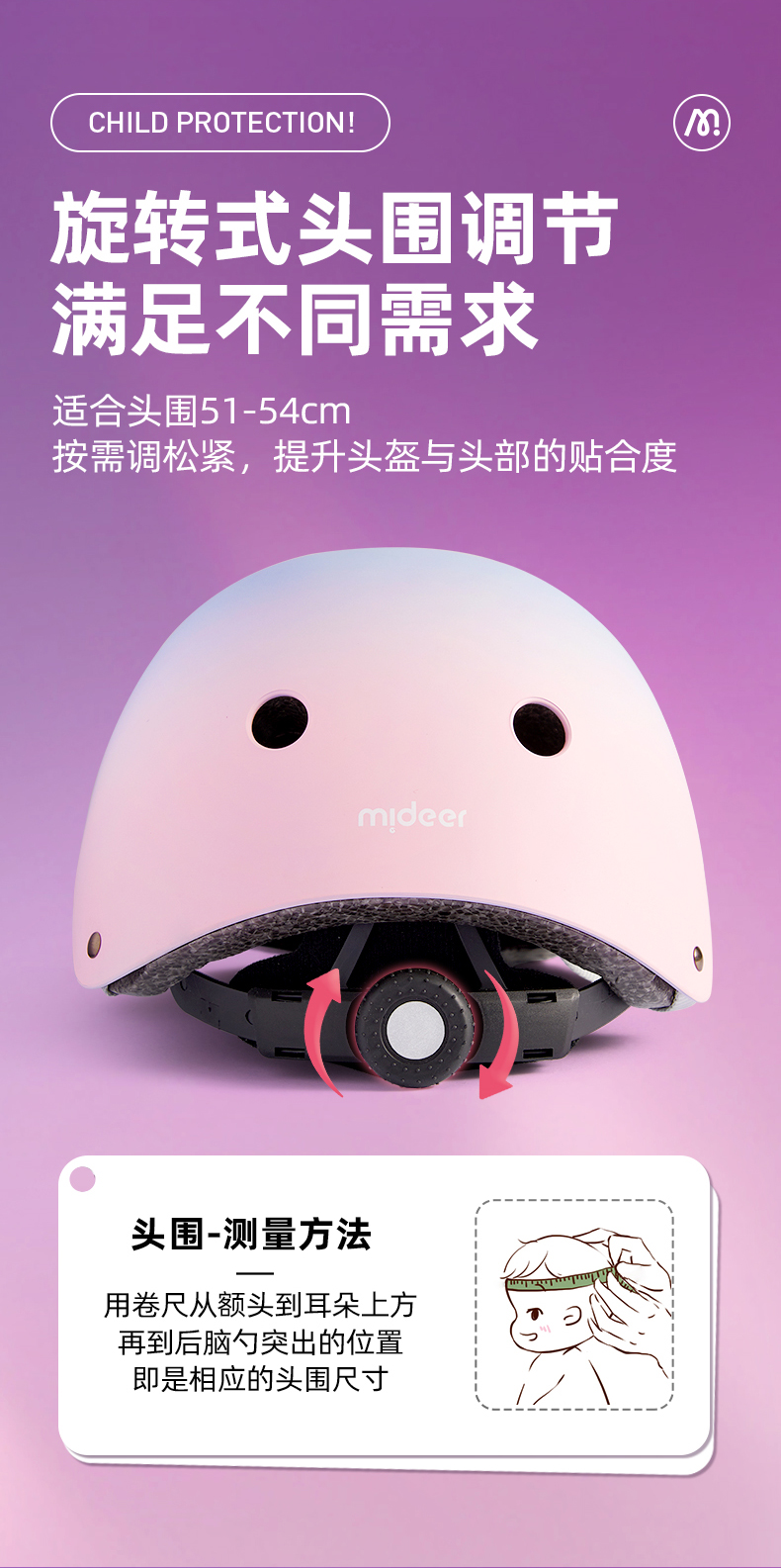 mideer弥鹿儿童护具轮滑骑行头盔男女款平衡车自行车滑板溜冰护膝
