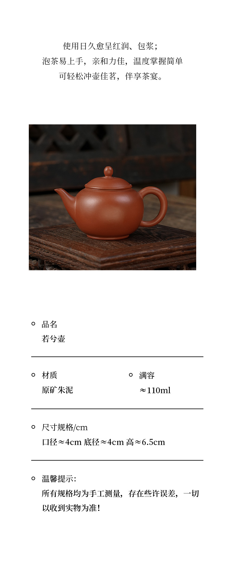 若兮壶原矿朱泥宜兴紫砂原矿茶壶紫砂壶功夫茶泡茶壶朱泥紫砂茶具仿古