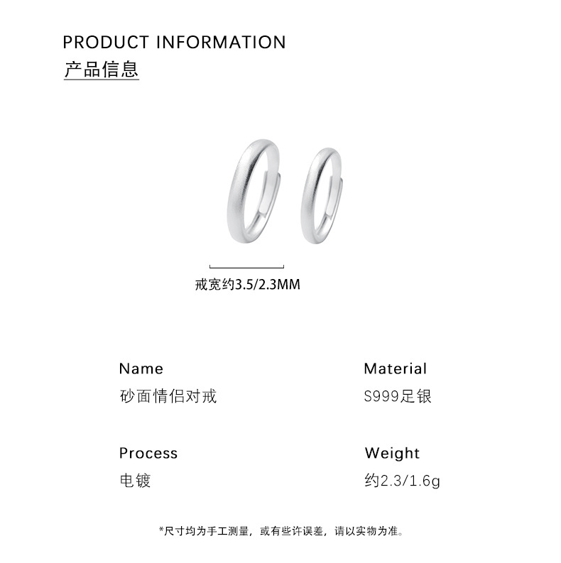【天生一对】S999银足银砂面情侣戒指【YXS-F623】