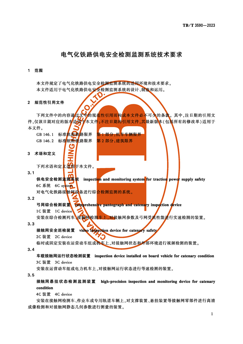 电气化铁路供电安全检测监测系统技术要求 TB/T 3590—2023