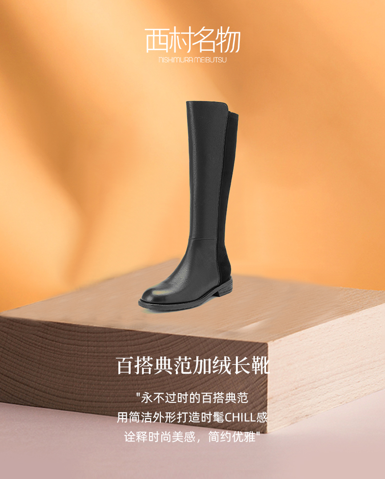 西村名物2024冬季新款英伦风厚底百搭显瘦典范加绒长筒靴女X24DQ47281