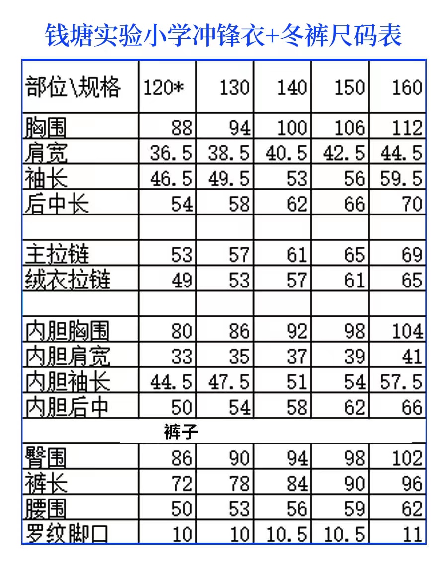 杭州市钱塘实验小学校服(冬装冲锋衣外套+摇粒绒内胆+冬裤)支持换货不支持退货