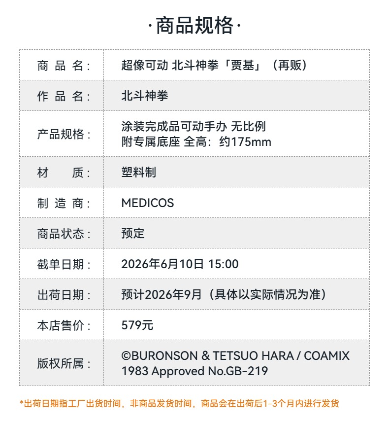 【GSC预售定金】超像可动 北斗神拳「贾基」