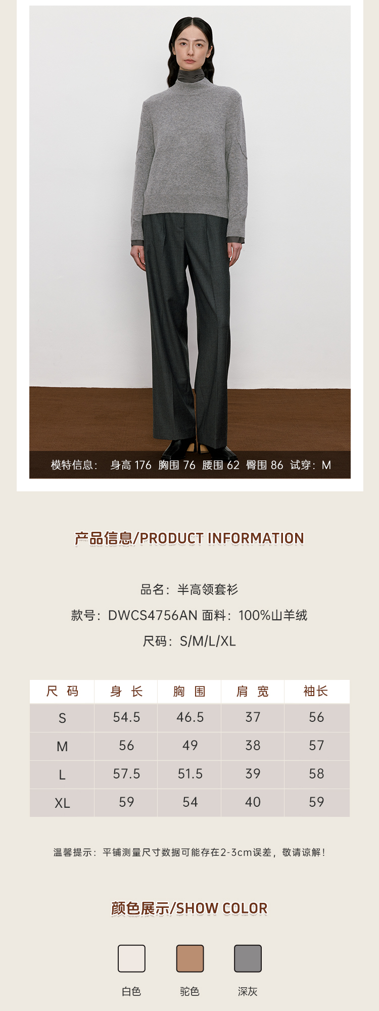 东黎 • 山羊绒女士秋冬半高领套衫 4756
