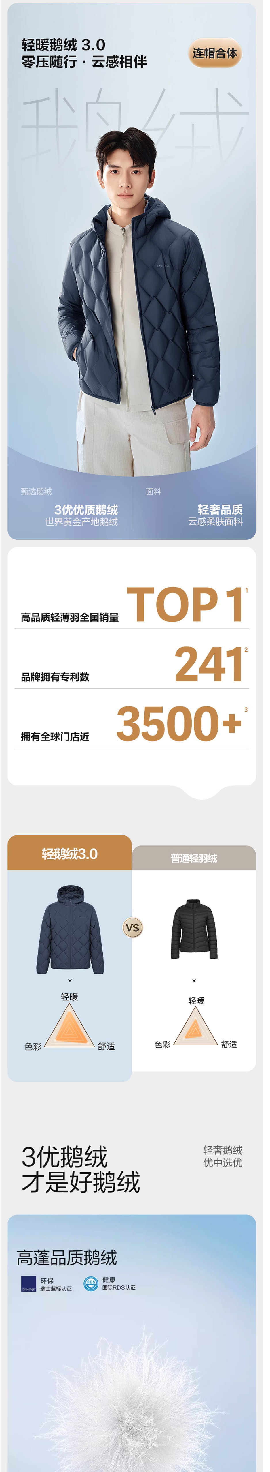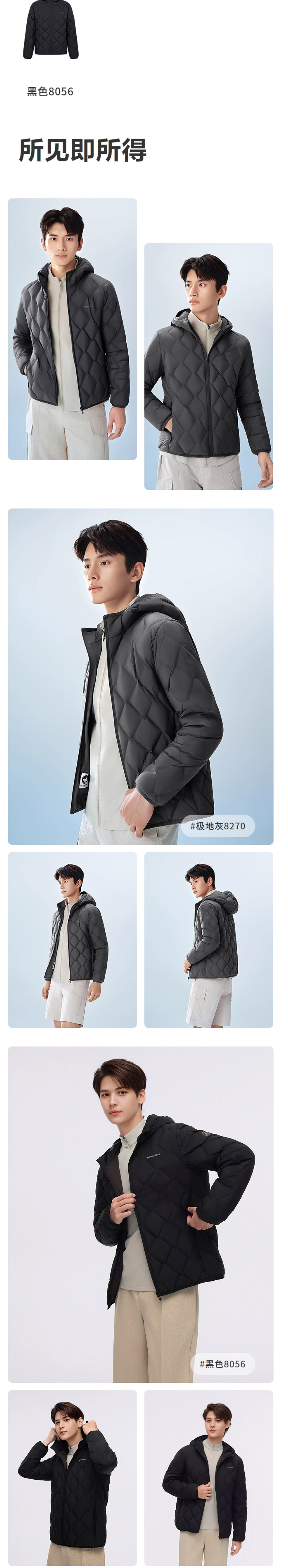 波司登2025秋冬新款轻薄短款连帽鹅绒羽绒服男时尚外套B250131023