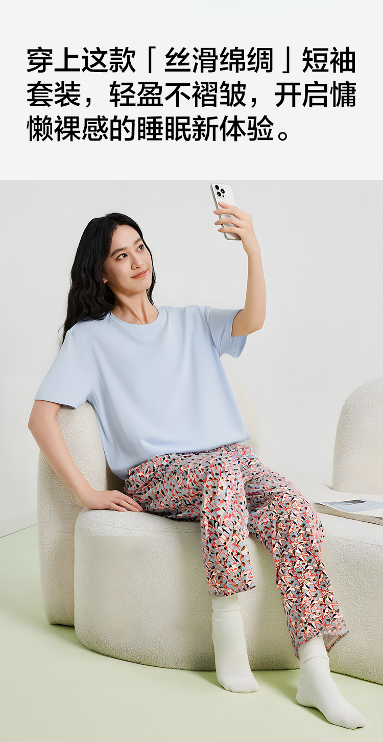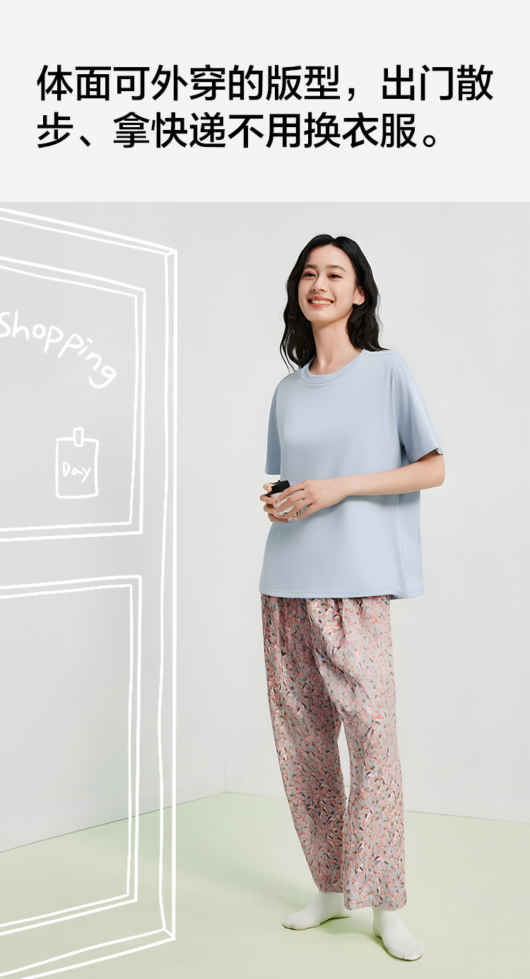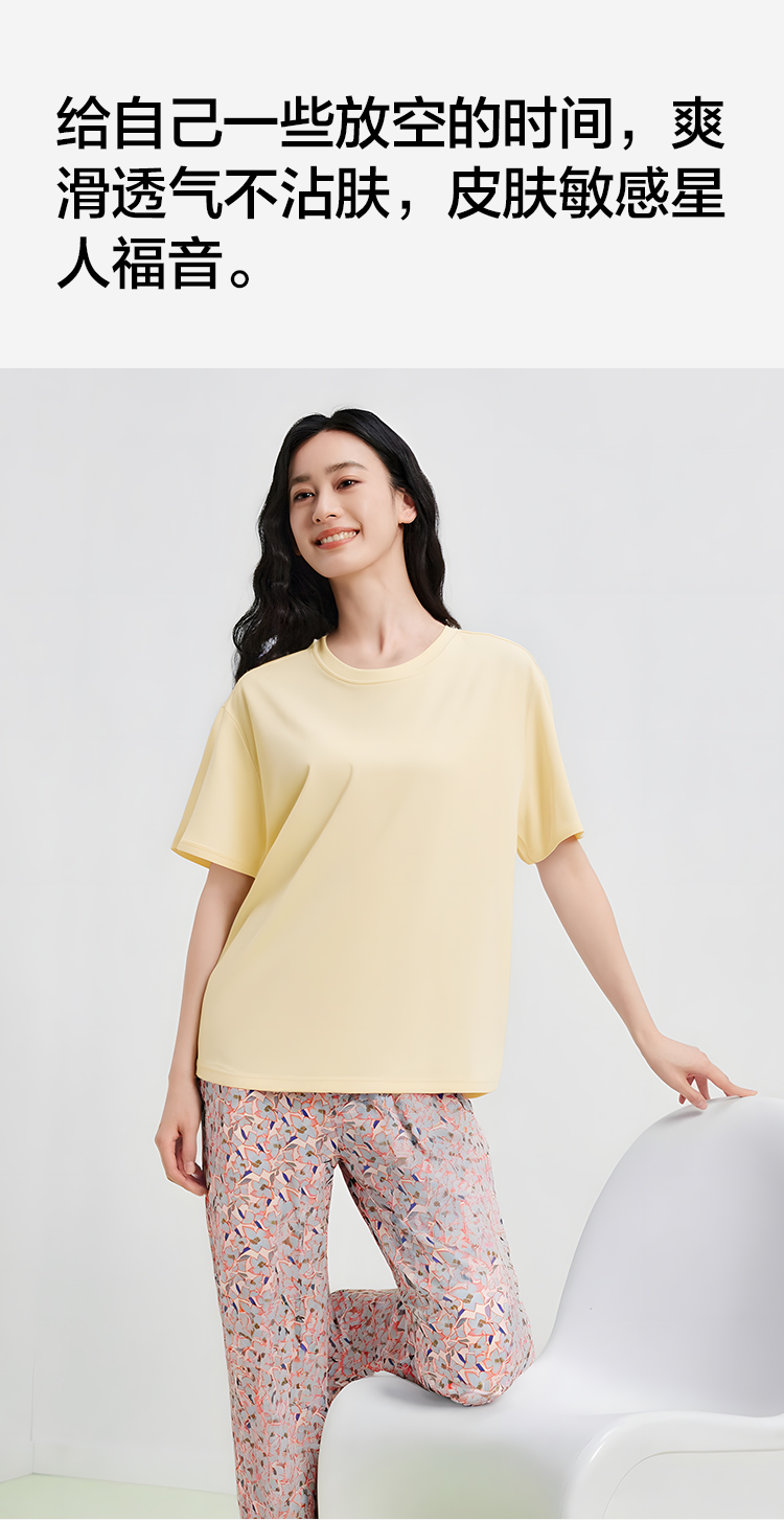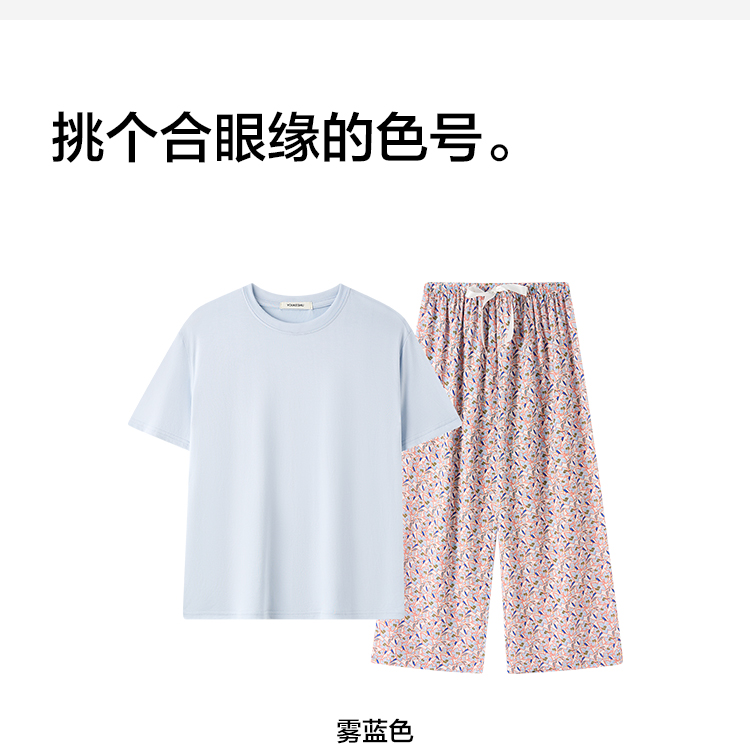 【清仓捡漏】【M-2XL】【有棵树】女士夏季凉感冰丝短袖长裤睡衣套装