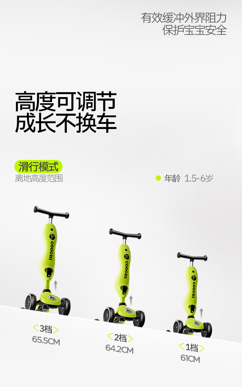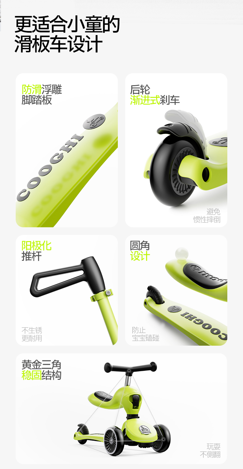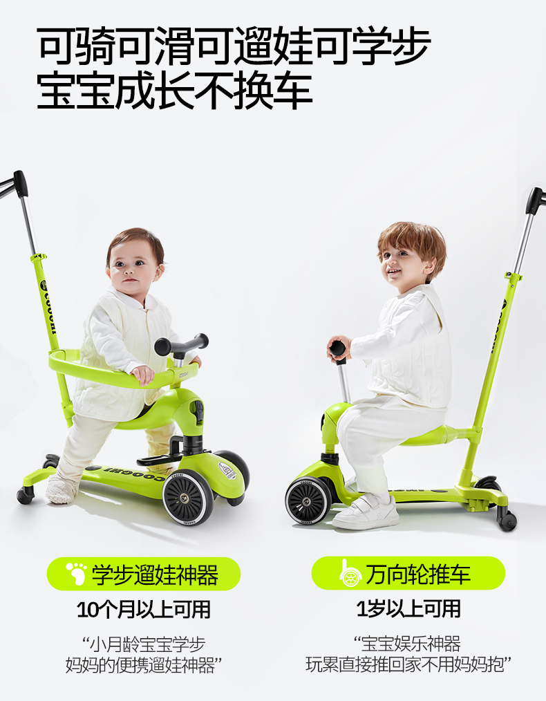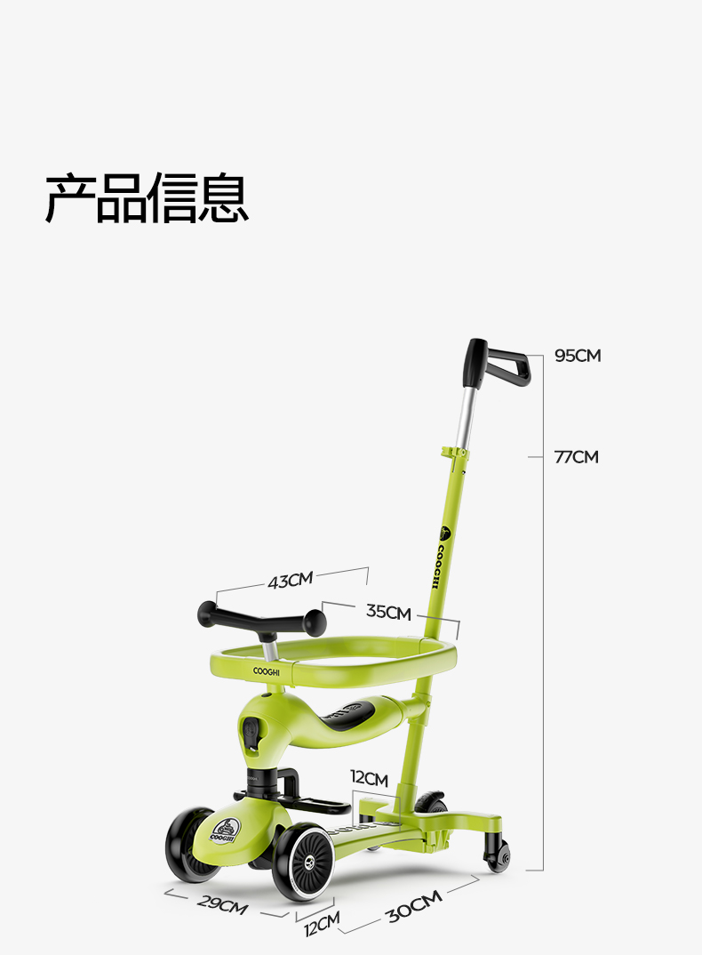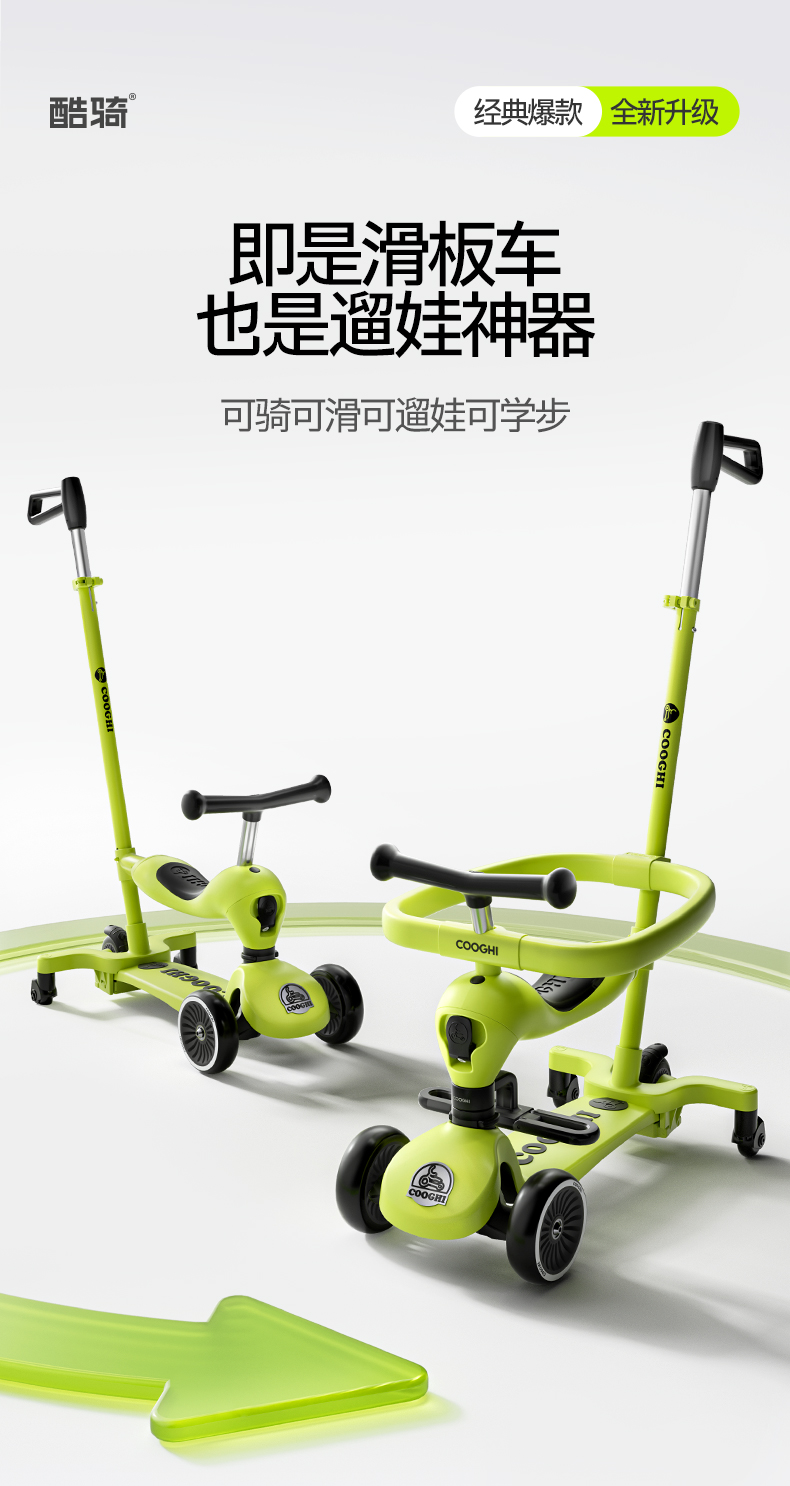 【酷骑官方】COOGHI酷骑小绿车二合一、三合一、六合一儿童滑板车★
