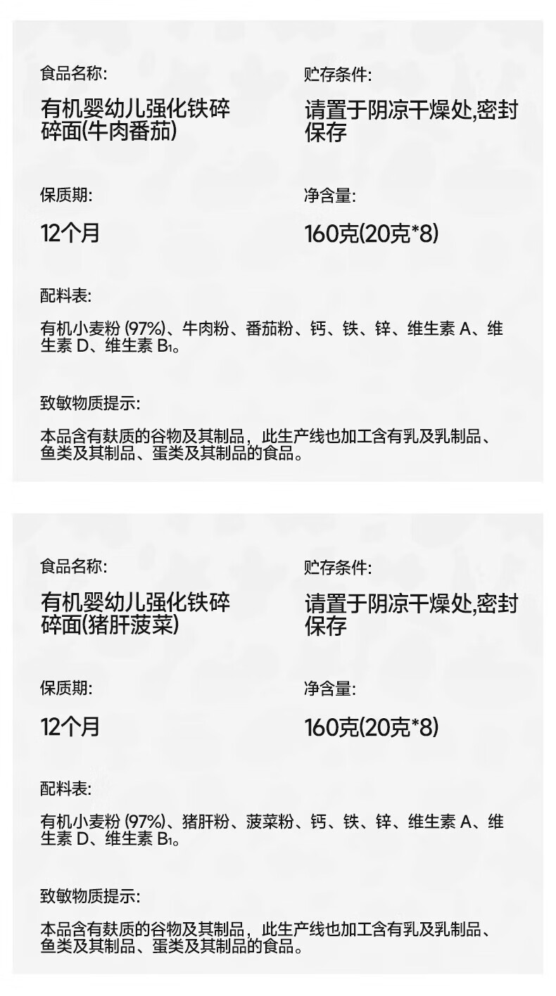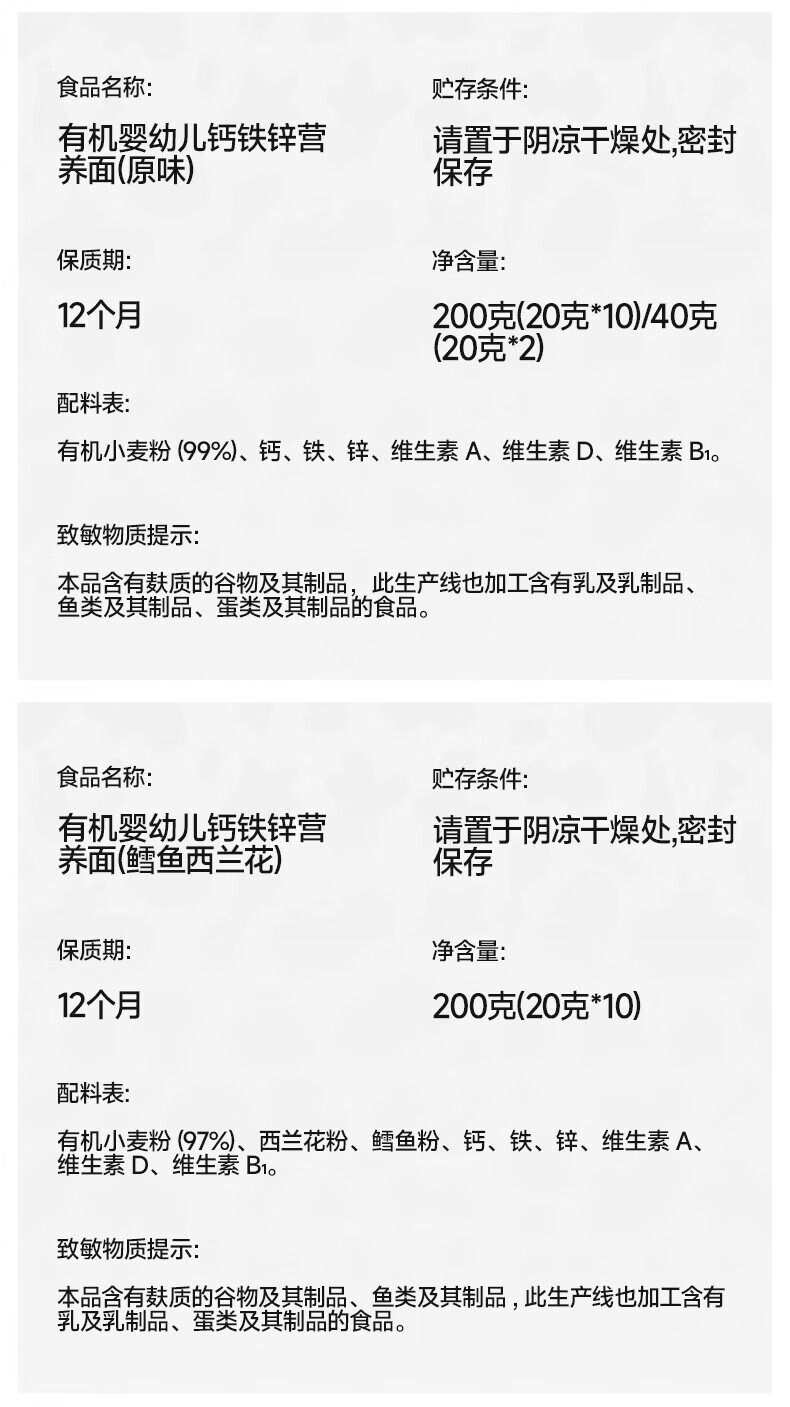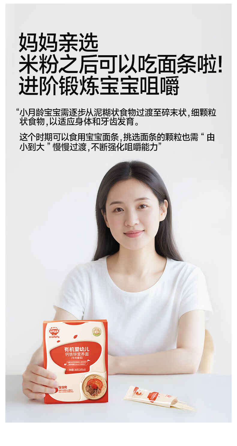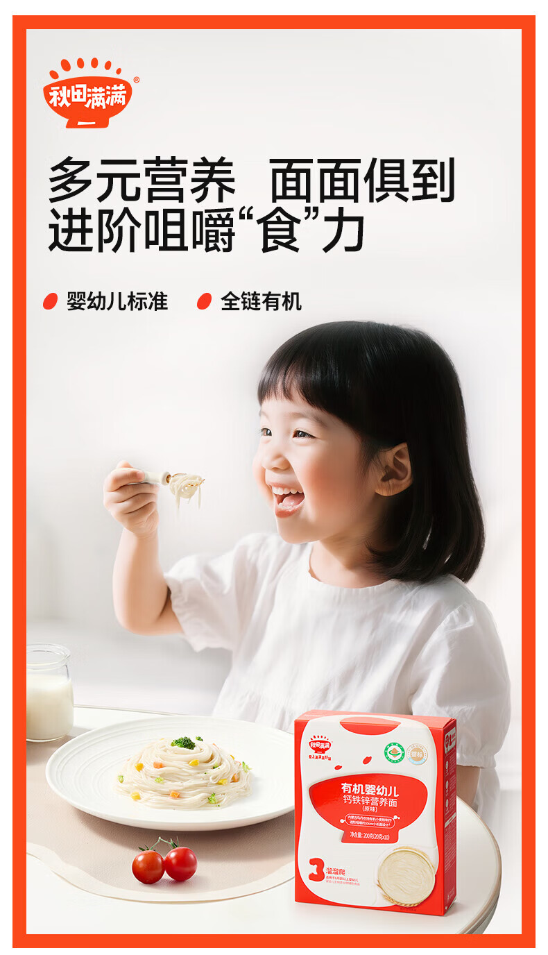 秋田满满--有机婴幼儿钙铁锌营养面(原味)200g