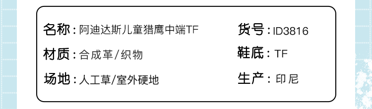 小李子阿迪达斯儿童足球鞋男童猎鹰TF碎钉学生训练鞋男女孩ID3816