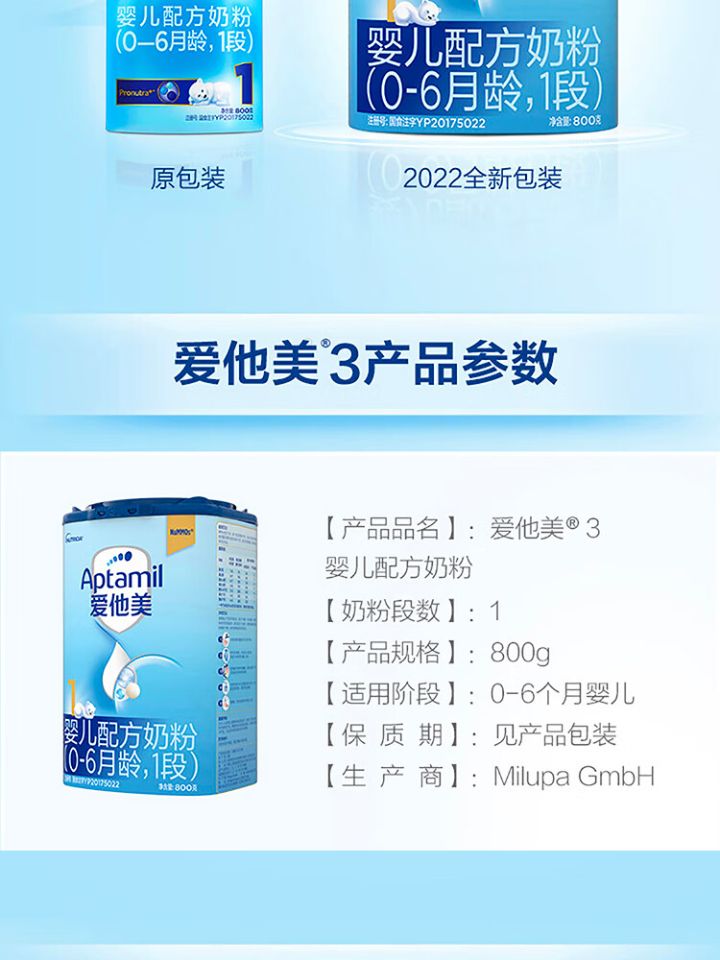爱他美(Aptamil) 德国进口 婴儿配方奶粉 0-6月龄 1段800g