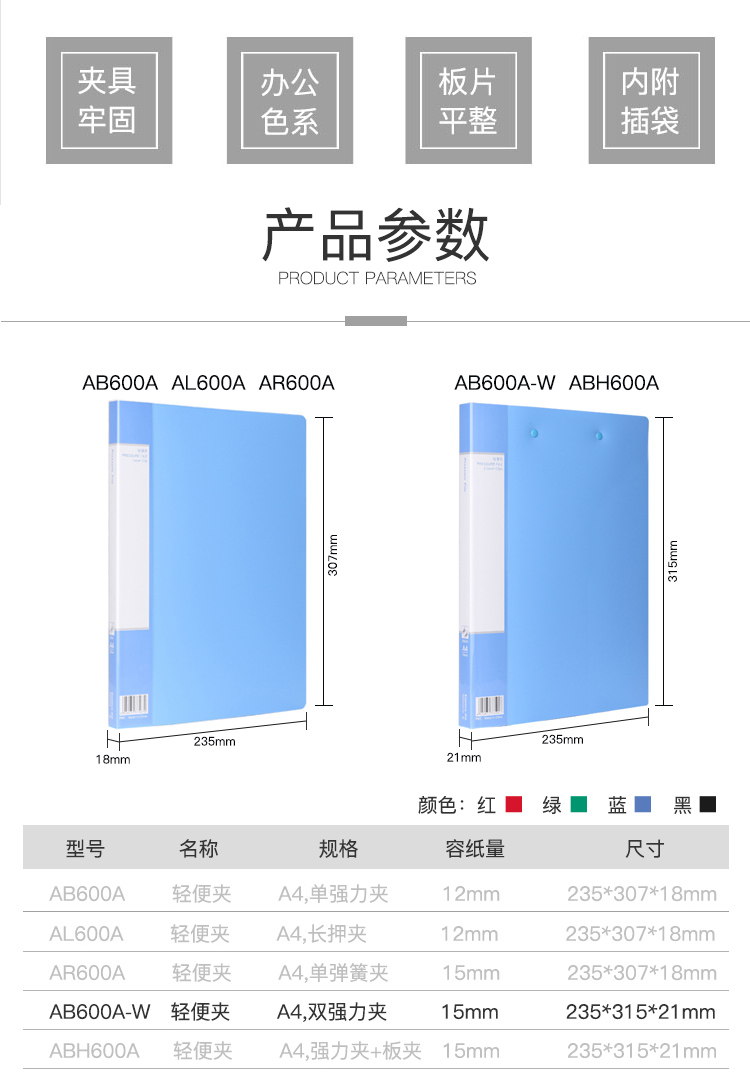 齐心双强力夹A4/AB600A-W/蓝色
