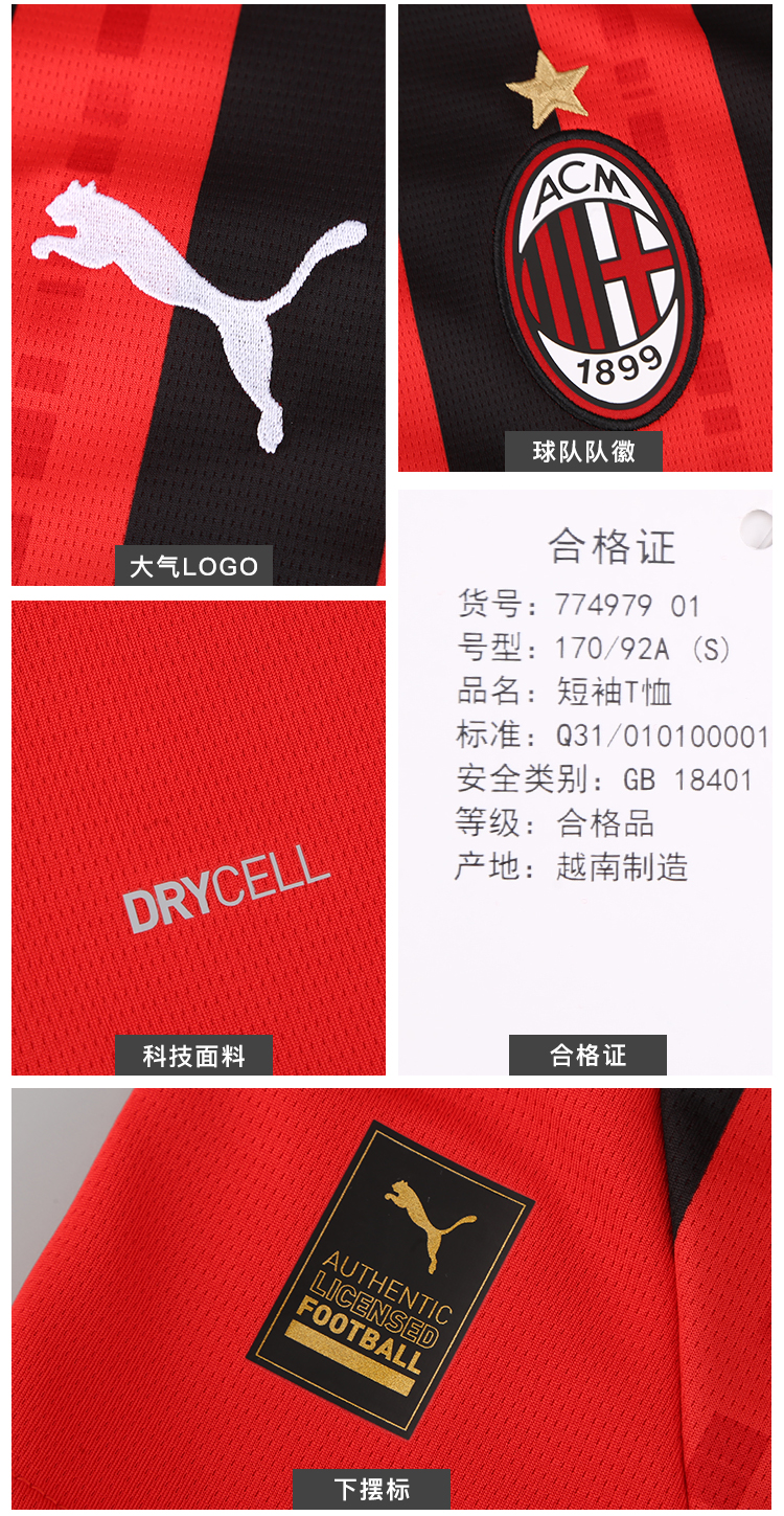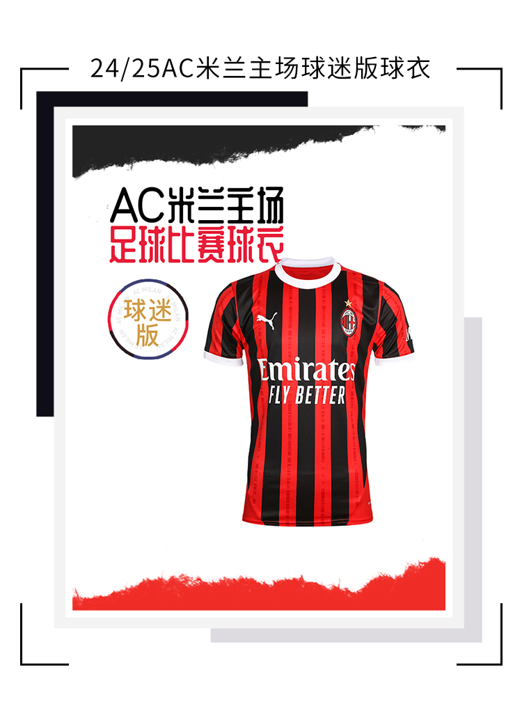 小李子PUMA彪马24/25赛季AC米兰主场球迷版比赛球衣短袖成人男774979 01