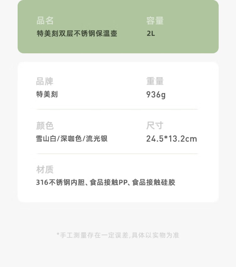 特美刻不锈钢保温壶2L咖啡色