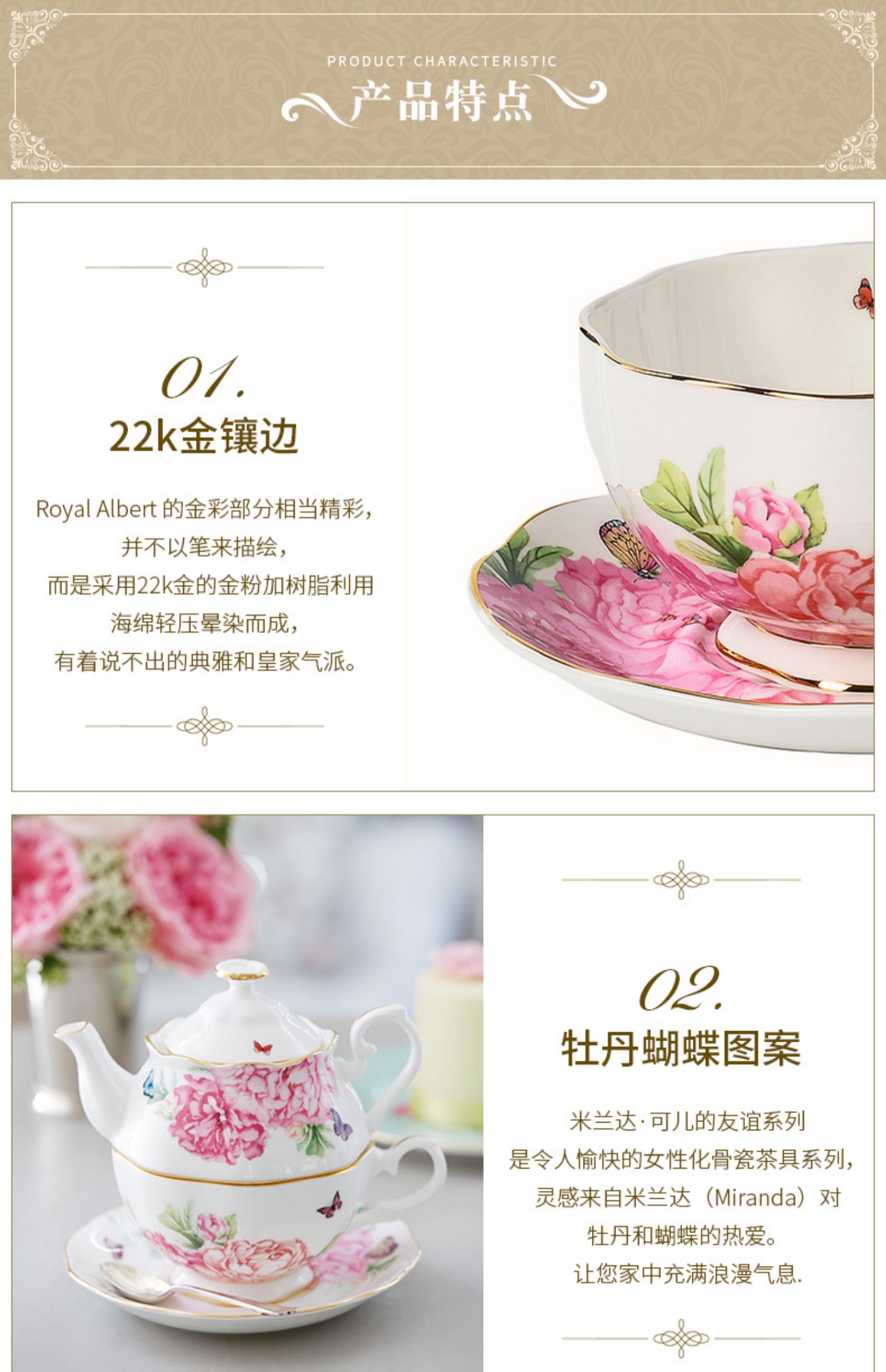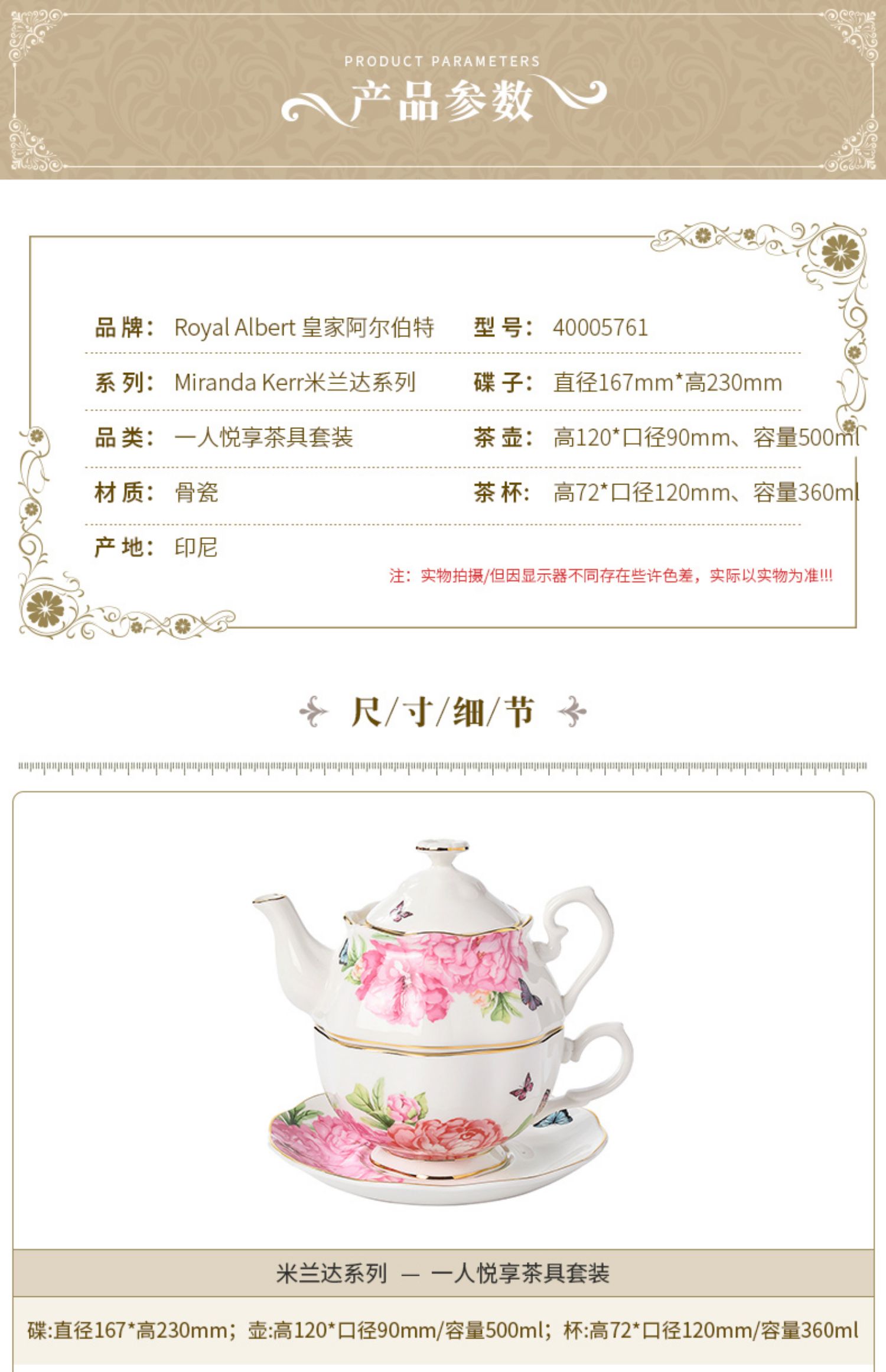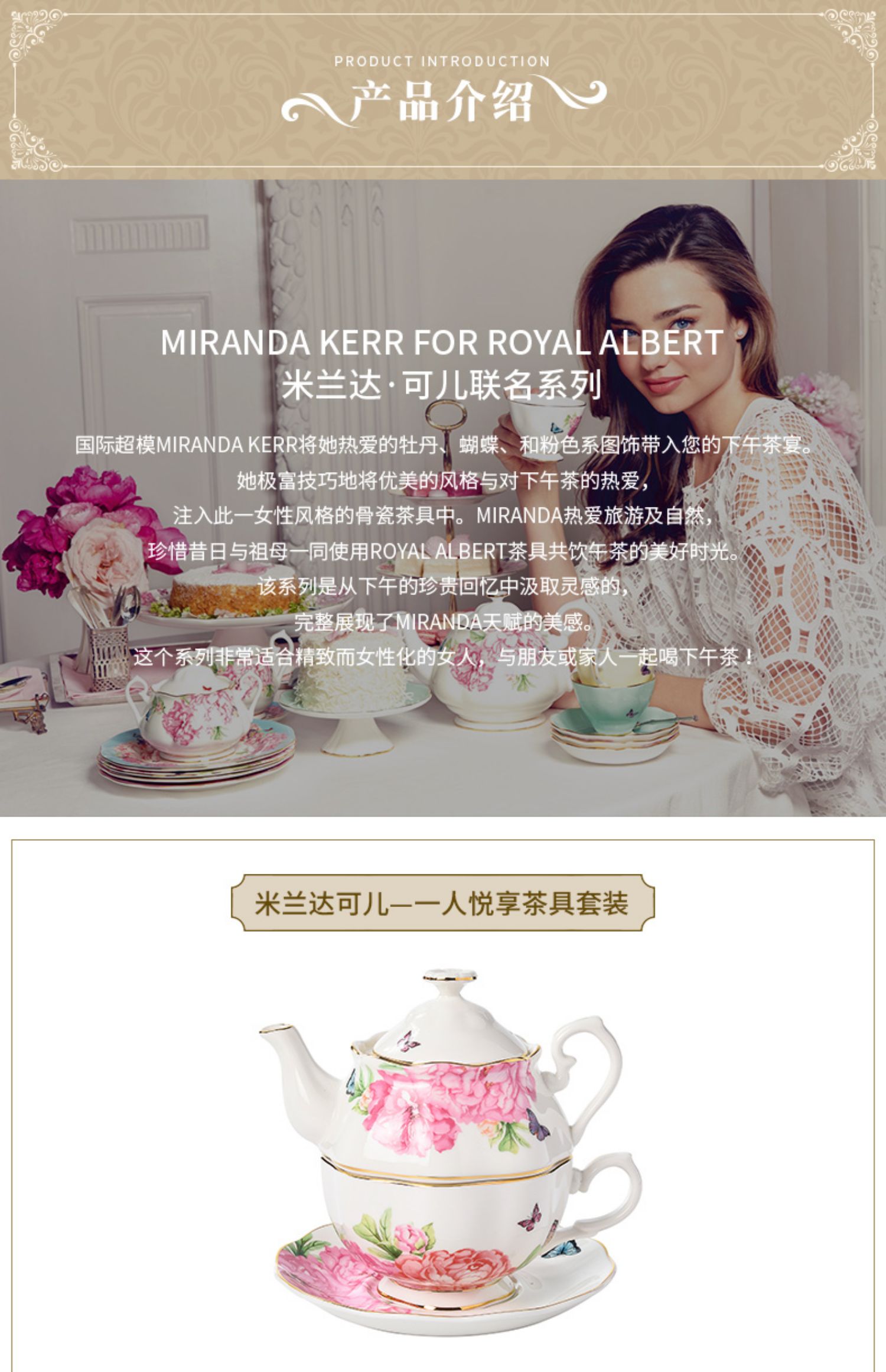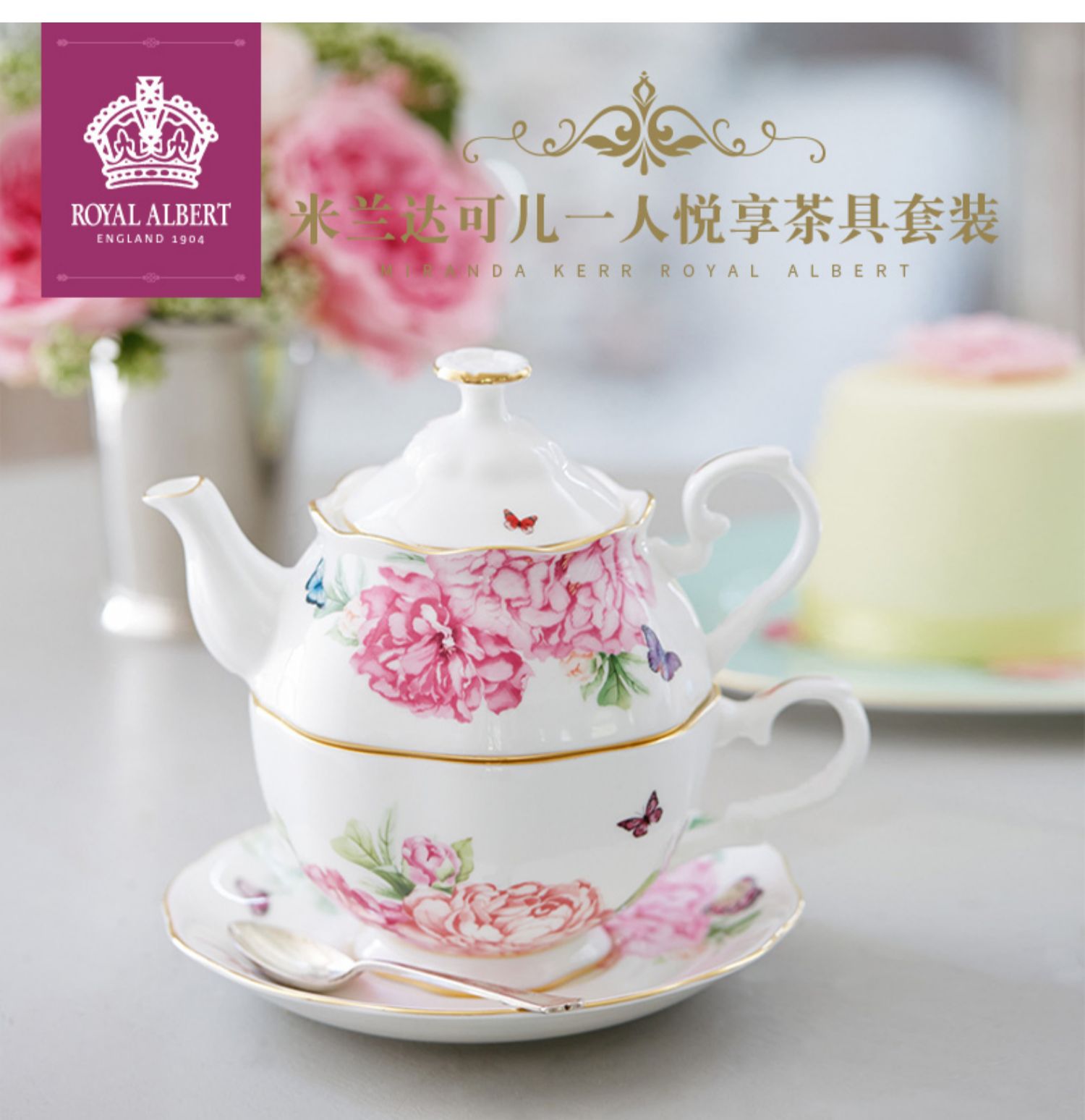 Royal Albert 米兰达可儿 茶壶套装 骨瓷茶具三件组套装欧式茶壶杯