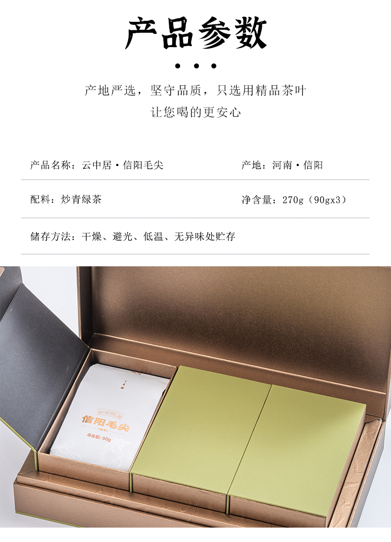 云中居茗悦系列特级信阳毛尖礼盒装270g(90g×3)