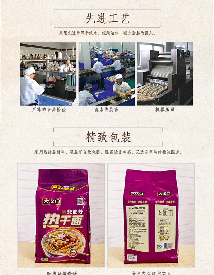 大汉口热干面是武汉城市名片之一,热干面代表企业。卖向全世界多个国家的武汉热干面,全球畅销15年, 全国各麦德龙、山姆、Today超市等大中型商超均有销售。